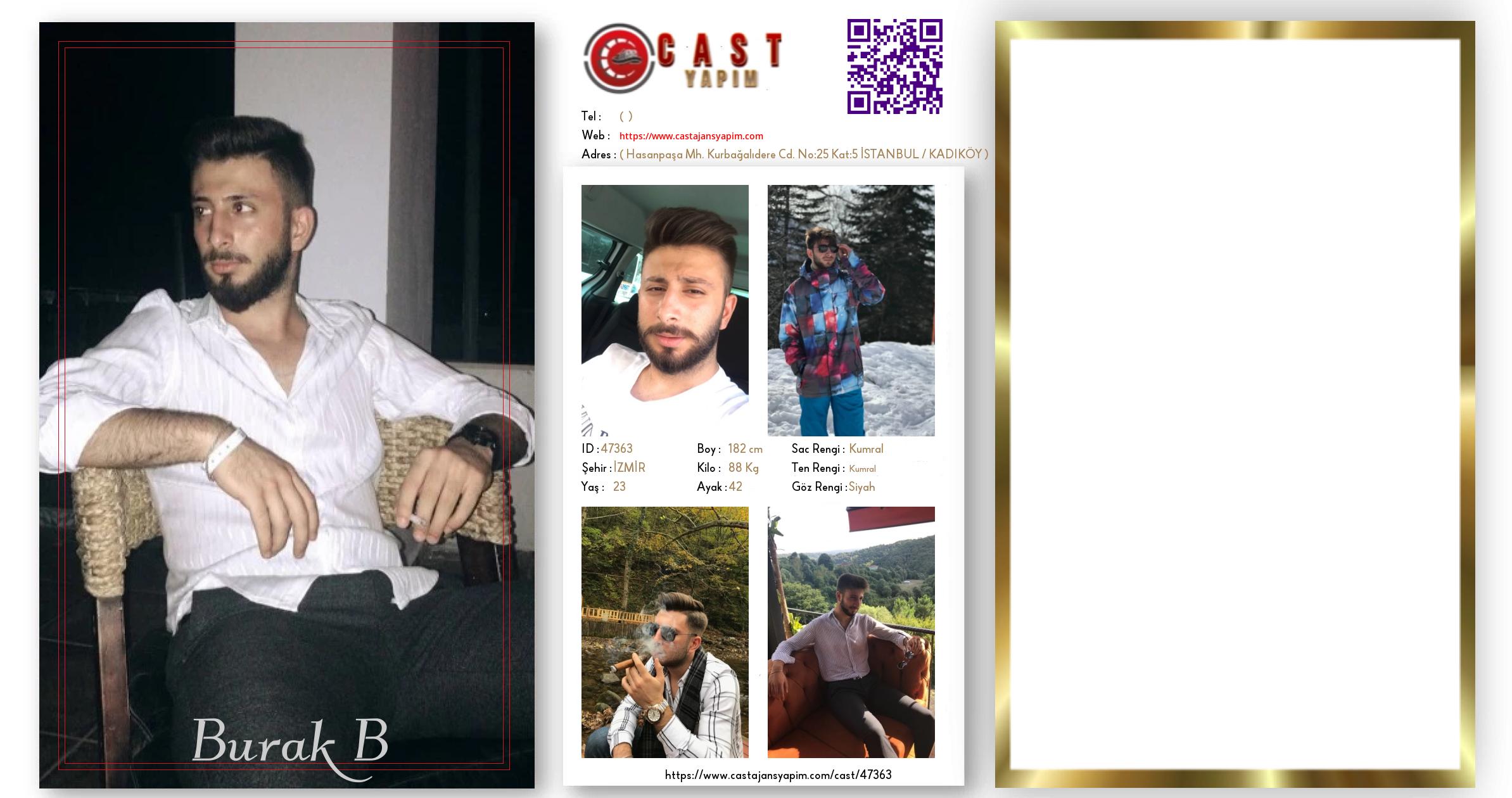 Merhaba, ben Burak B. İZMİR şehrinde yaşıyorum ve 23 yaşındayım. Genel özelliklerim arasında boyum 182 cm, kilom 88 kg, saç rengim Kumral, göz rengim Siyah, ten rengim Kumral.