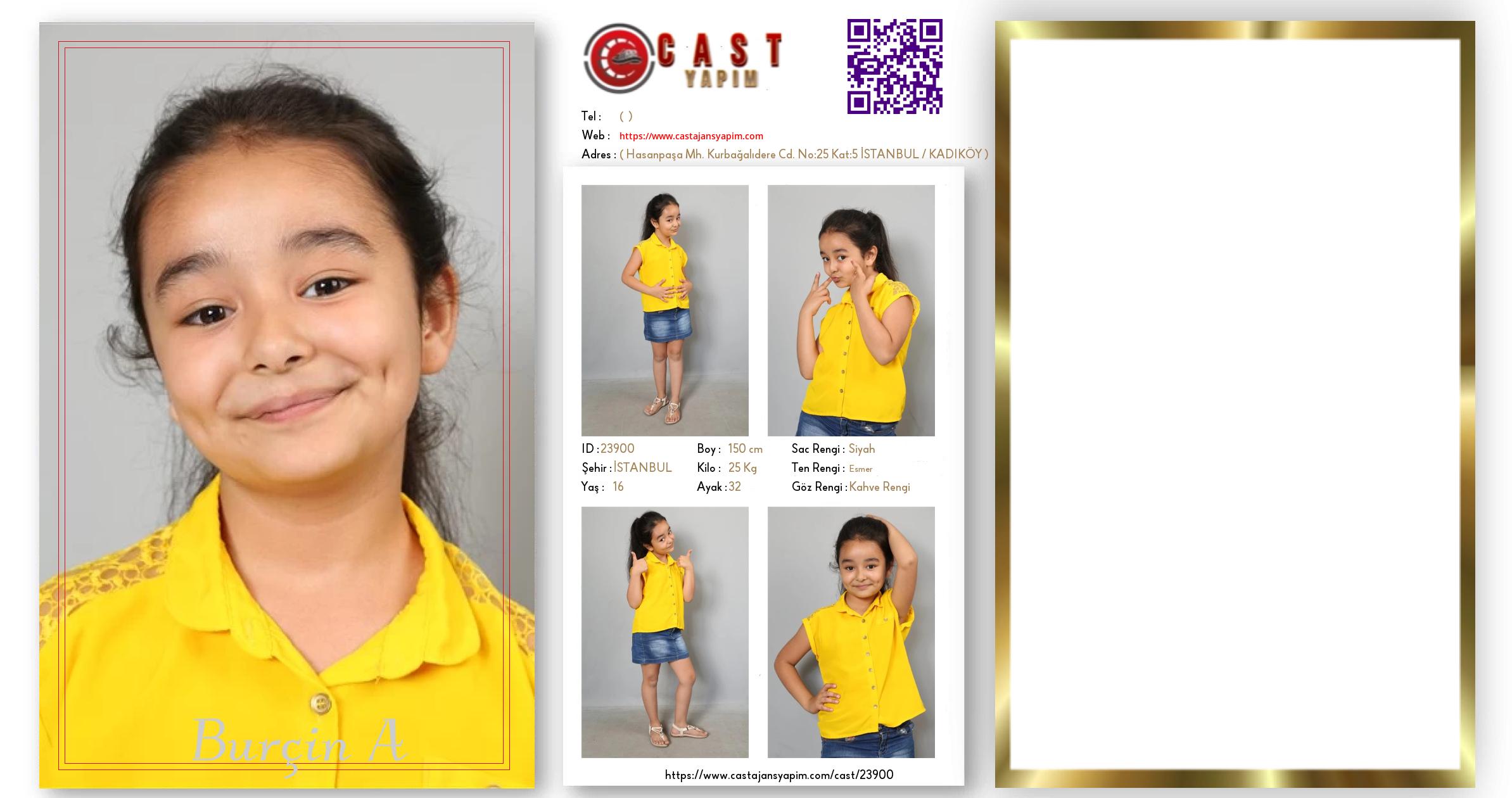 Merhaba, ben Burçin A. İSTANBUL şehrinde yaşıyorum ve 16 yaşındayım. Genel özelliklerim arasında boyum 150 cm, kilom 25 kg, saç rengim Siyah, göz rengim Kahve Rengi, ten rengim Esmer.