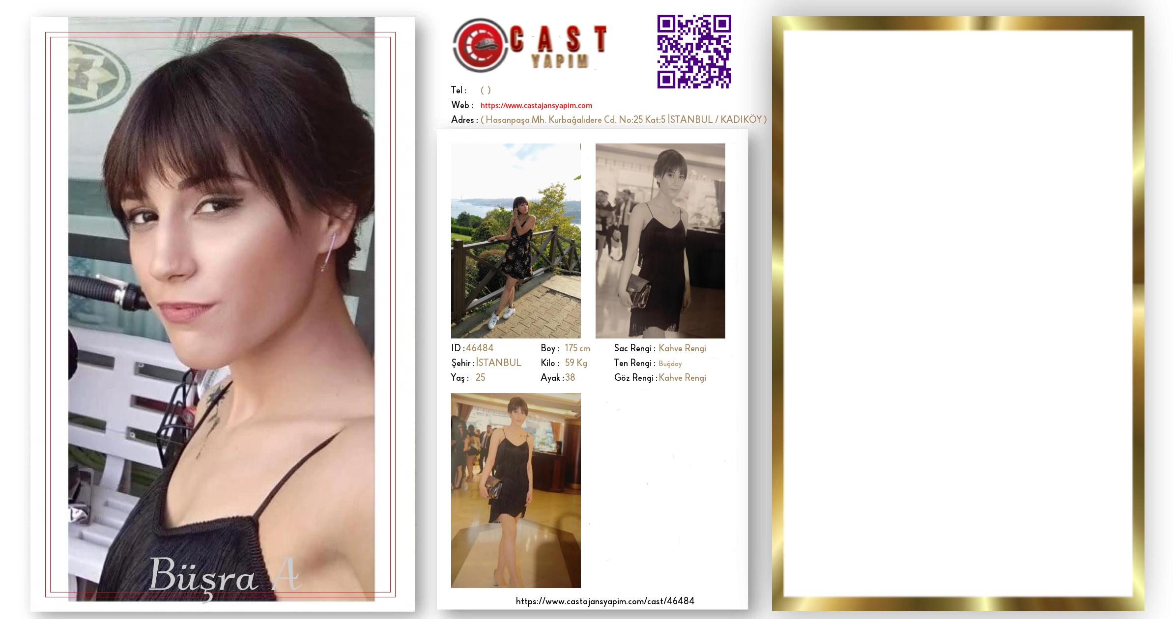 Merhaba, ben Büşra A. İSTANBUL şehrinde yaşıyorum ve 25 yaşındayım. Genel özelliklerim arasında boyum 175 cm, kilom 59 kg, saç rengim Kahve Rengi, göz rengim Kahve Rengi, ten rengim Buğday.