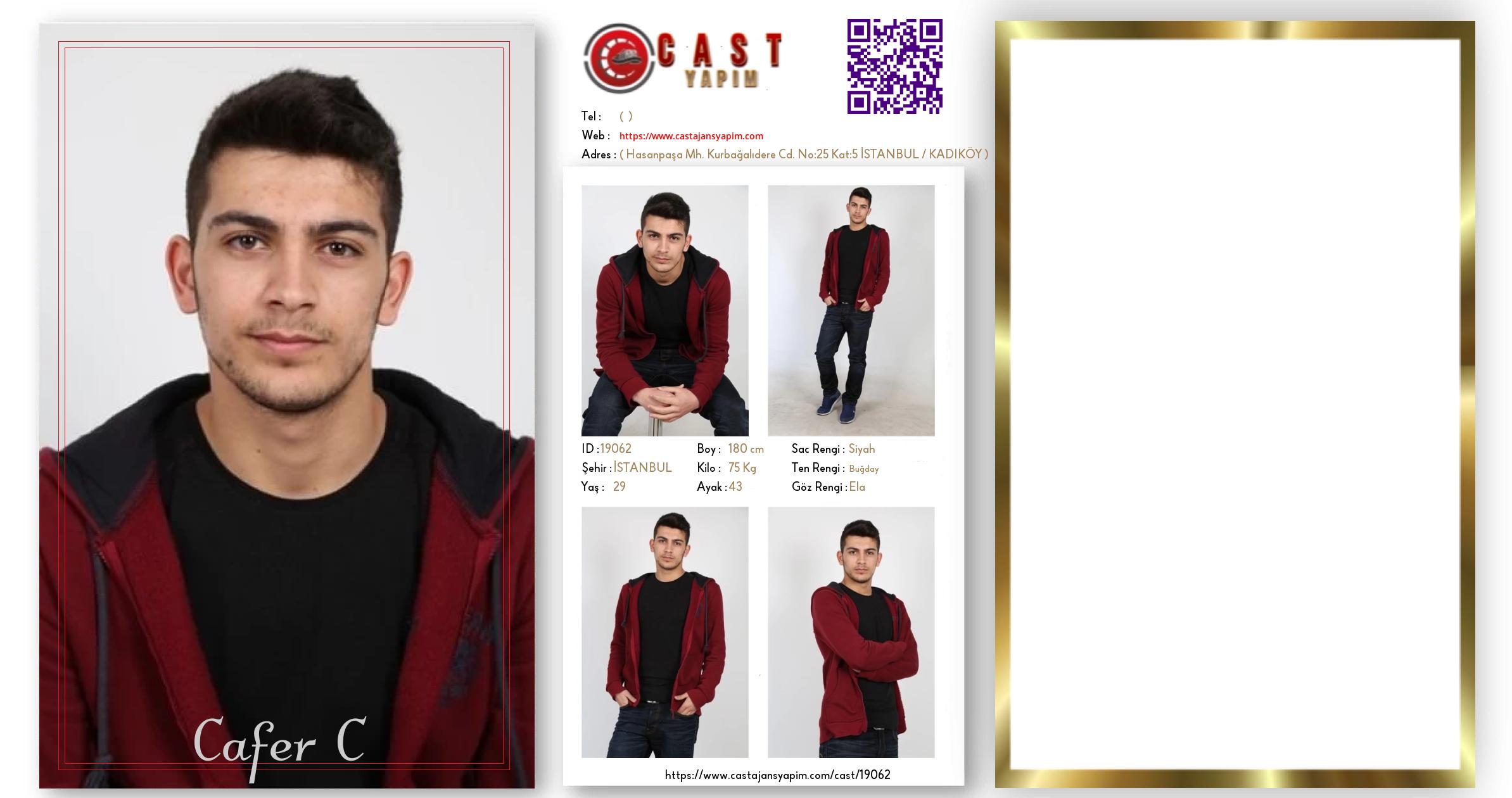 Merhaba, ben Cafer C. İSTANBUL şehrinde yaşıyorum ve 29 yaşındayım. Genel özelliklerim arasında boyum 180 cm, kilom 75 kg, saç rengim Siyah, göz rengim Ela, ten rengim Buğday.