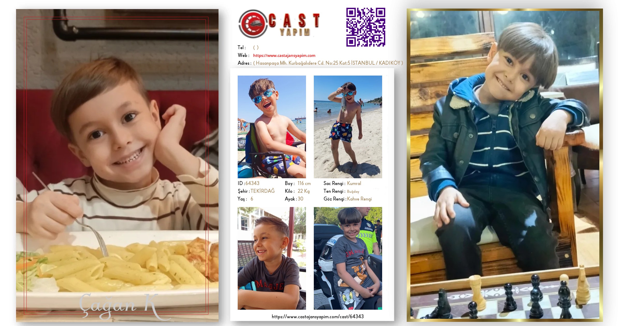 Merhaba, ben Çağan K. TEKİRDAĞ şehrinde yaşıyorum ve 6 yaşındayım. Genel özelliklerim arasında boyum 116 cm, kilom 22 kg, saç rengim Kumral, göz rengim Kahve Rengi, ten rengim Buğday.