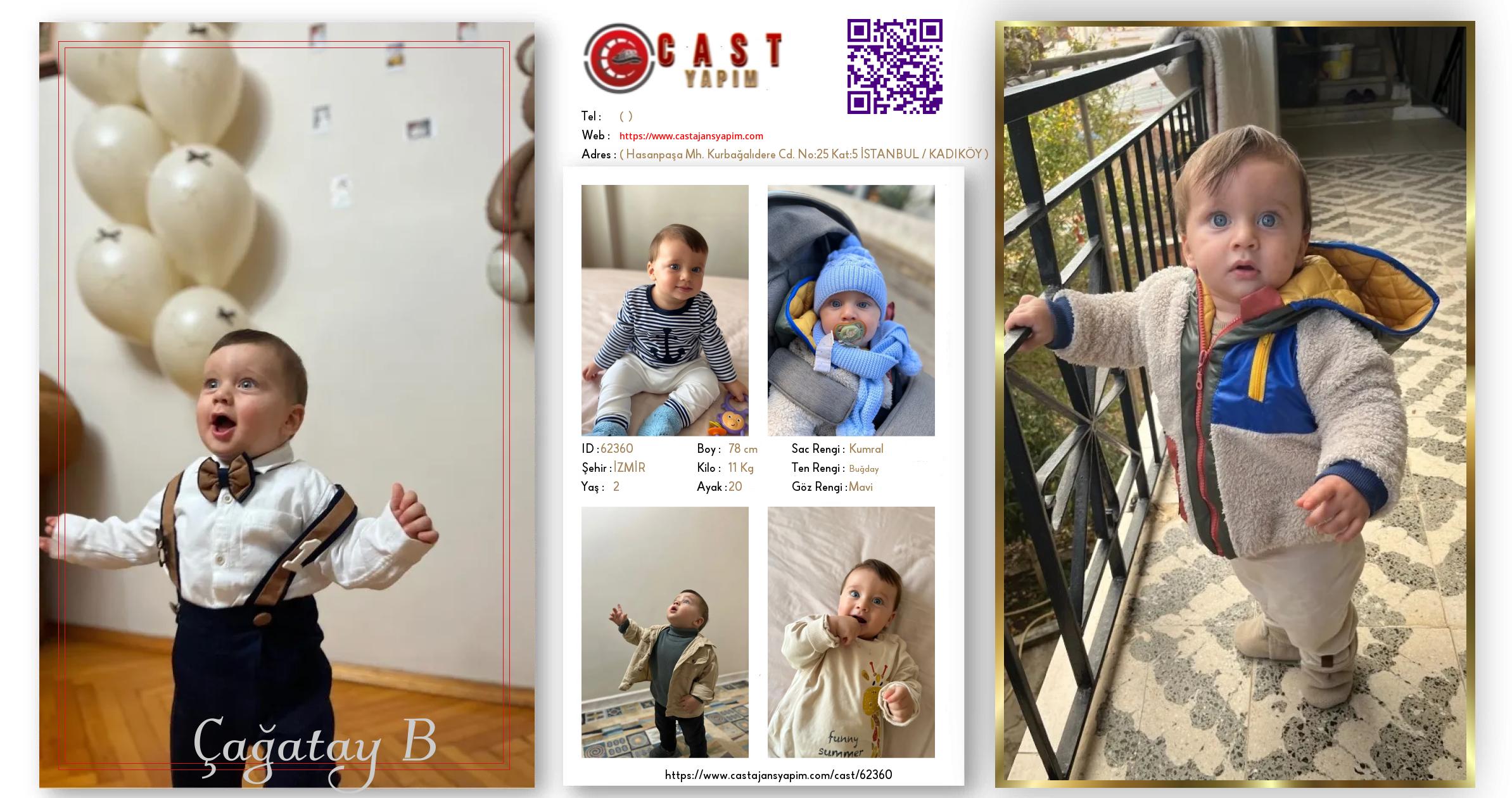 Merhaba, ben Çağatay Mert. İZMİR şehrinde yaşıyorum ve 2 yaşındayım. Genel özelliklerim arasında boyum 78 cm, kilom 11 kg, saç rengim Kumral, göz rengim Mavi, ten rengim Buğday.