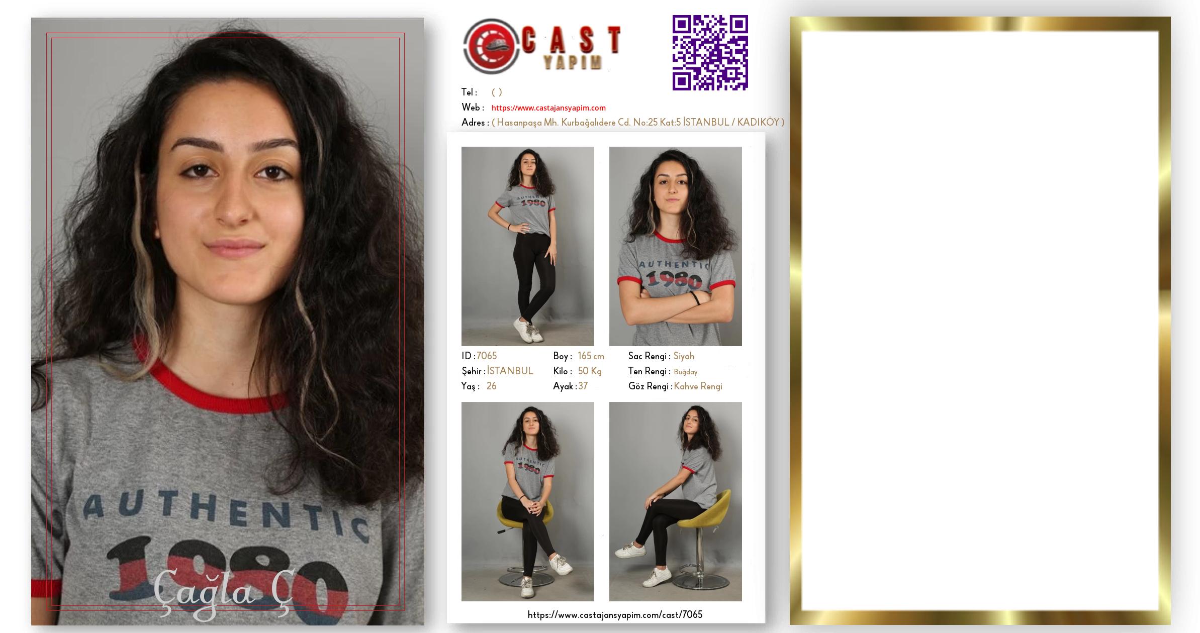 Merhaba, ben Çağla Ç. İSTANBUL şehrinde yaşıyorum ve 26 yaşındayım. Genel özelliklerim arasında boyum 165 cm, kilom 50 kg, saç rengim Siyah, göz rengim Kahve Rengi, ten rengim Buğday.