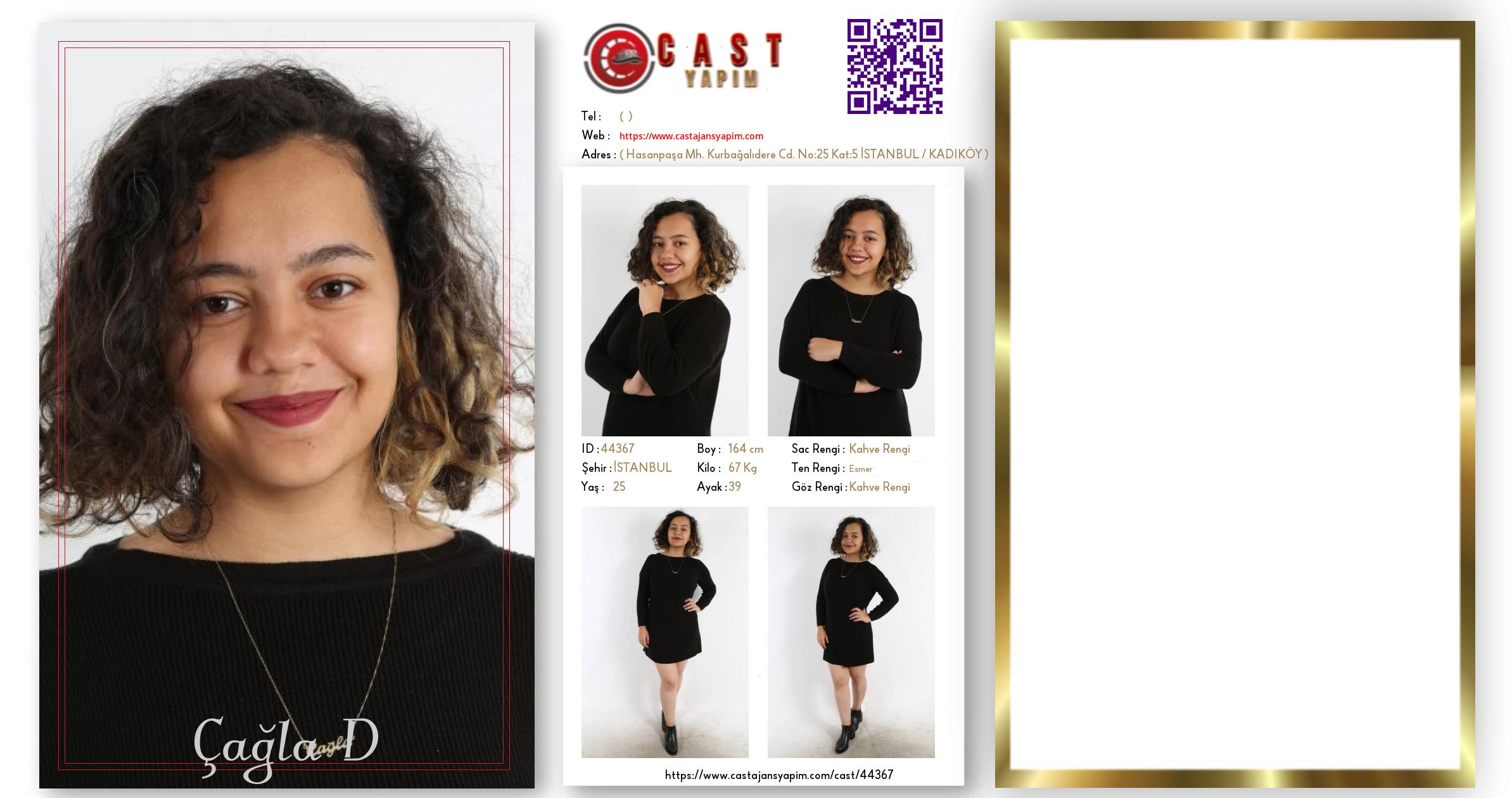 Merhaba, ben Çağla D. İSTANBUL şehrinde yaşıyorum ve 25 yaşındayım. Genel özelliklerim arasında boyum 164 cm, kilom 67 kg, saç rengim Kahve Rengi, göz rengim Kahve Rengi, ten rengim Esmer.