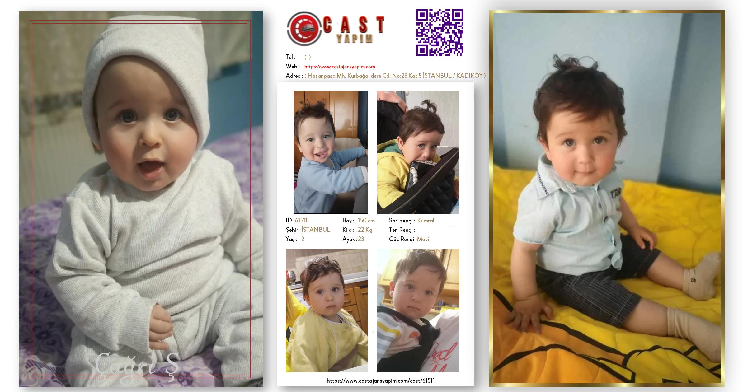 Merhaba, ben Çağrı Ş. İSTANBUL şehrinde yaşıyorum ve 2 yaşındayım. Genel özelliklerim arasında boyum 150 cm, kilom 22 kg, saç rengim Kumral, göz rengim Mavi.