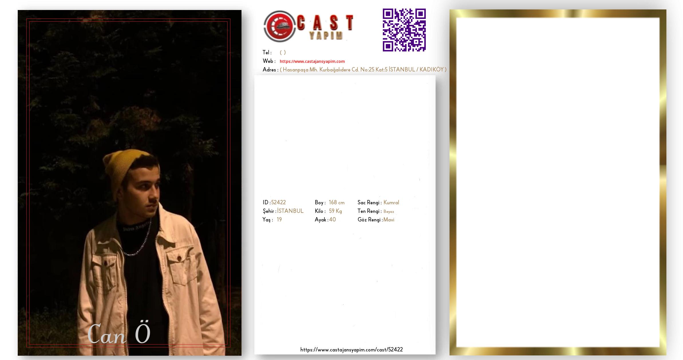 Merhaba, ben Can Ö. İSTANBUL şehrinde yaşıyorum ve 19 yaşındayım. Genel özelliklerim arasında boyum 168 cm, kilom 59 kg, saç rengim Kumral, göz rengim Mavi, ten rengim Beyaz.