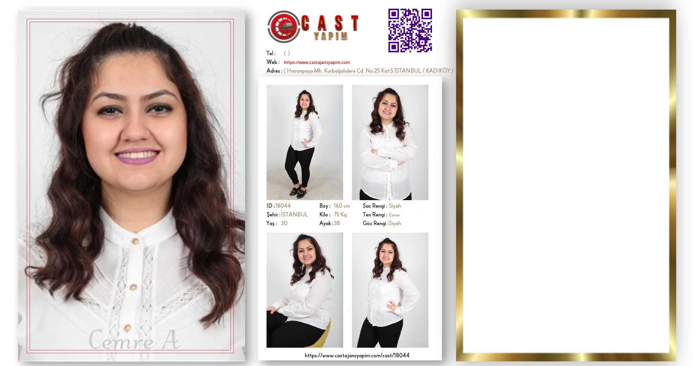 Merhaba, ben Cemre A. İSTANBUL şehrinde yaşıyorum ve 30 yaşındayım. Genel özelliklerim arasında boyum 160 cm, kilom 75 kg, saç rengim Siyah, göz rengim Siyah, ten rengim Esmer.
