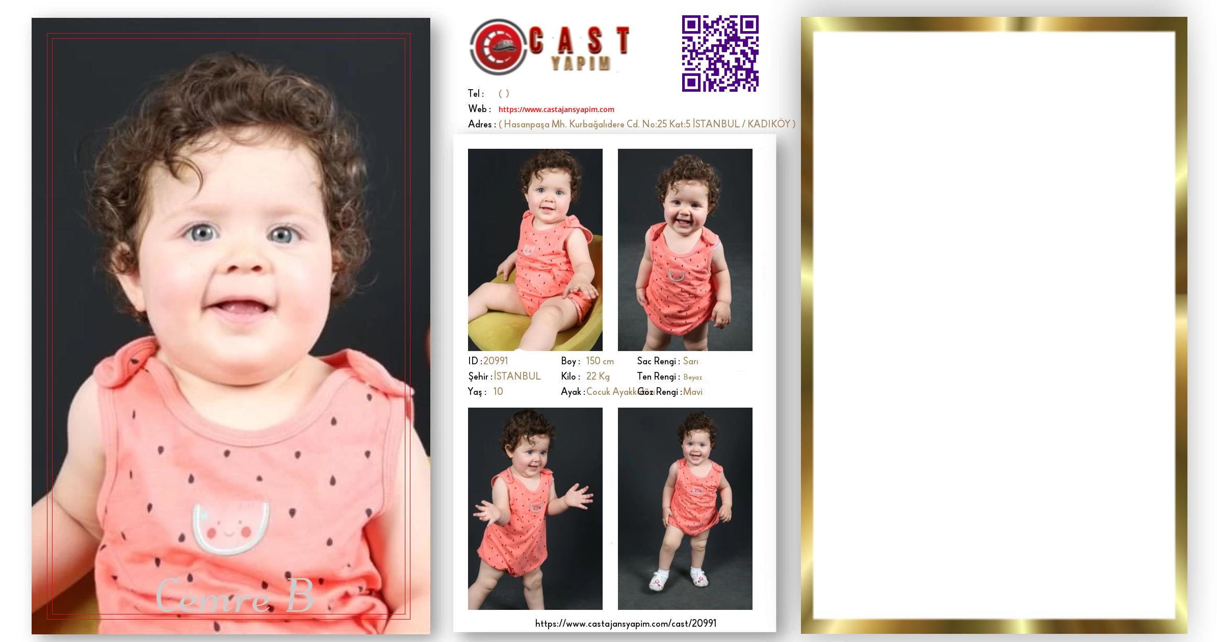 Merhaba, ben Cemre B. İSTANBUL şehrinde yaşıyorum ve 10 yaşındayım. Genel özelliklerim arasında boyum 150 cm, kilom 22 kg, saç rengim Sarı, göz rengim Mavi, ten rengim Beyaz.