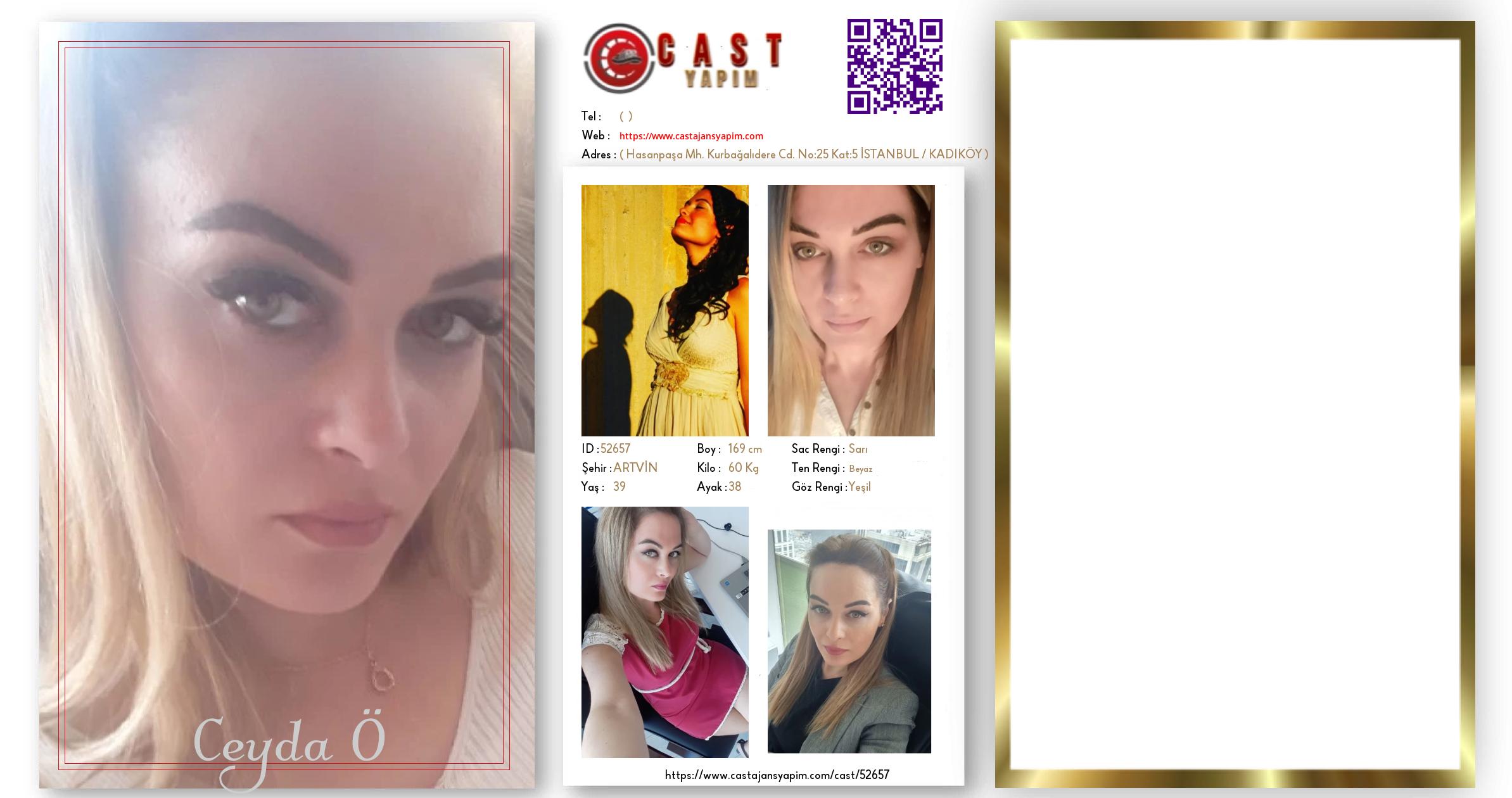 Merhaba, ben Ceyda Ö. ARTVİN şehrinde yaşıyorum ve 39 yaşındayım. Genel özelliklerim arasında boyum 169 cm, kilom 60 kg, saç rengim Sarı, göz rengim Yeşil, ten rengim Beyaz.