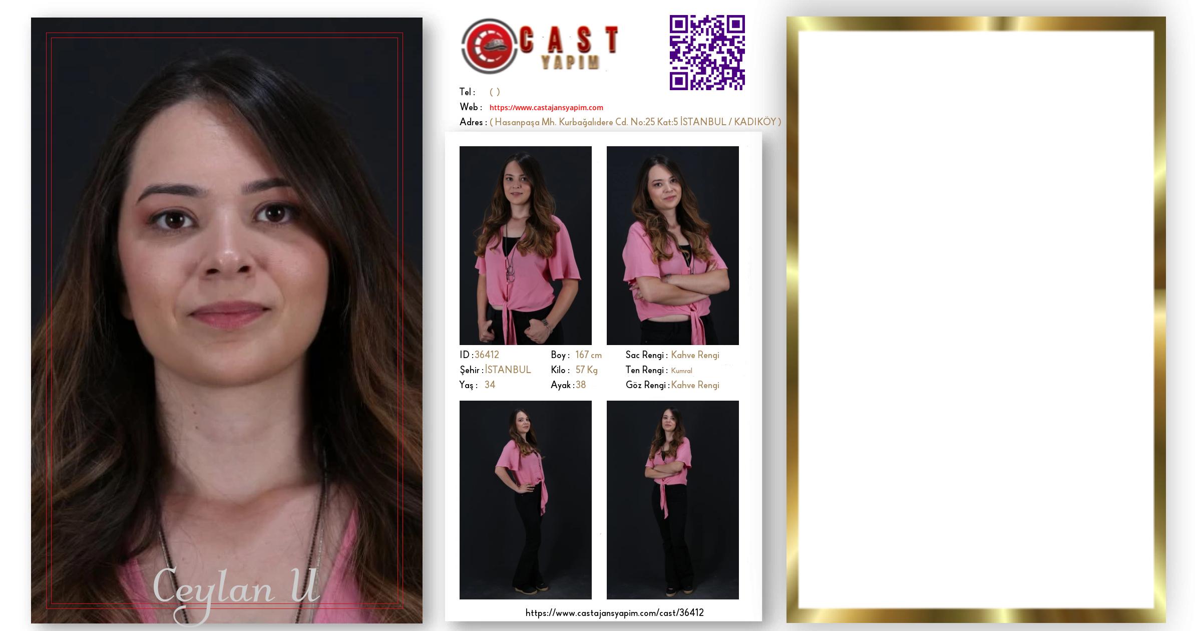 Merhaba, ben Ceylan U. İSTANBUL şehrinde yaşıyorum ve 34 yaşındayım. Genel özelliklerim arasında boyum 167 cm, kilom 57 kg, saç rengim Kahve Rengi, göz rengim Kahve Rengi, ten rengim Kumral.