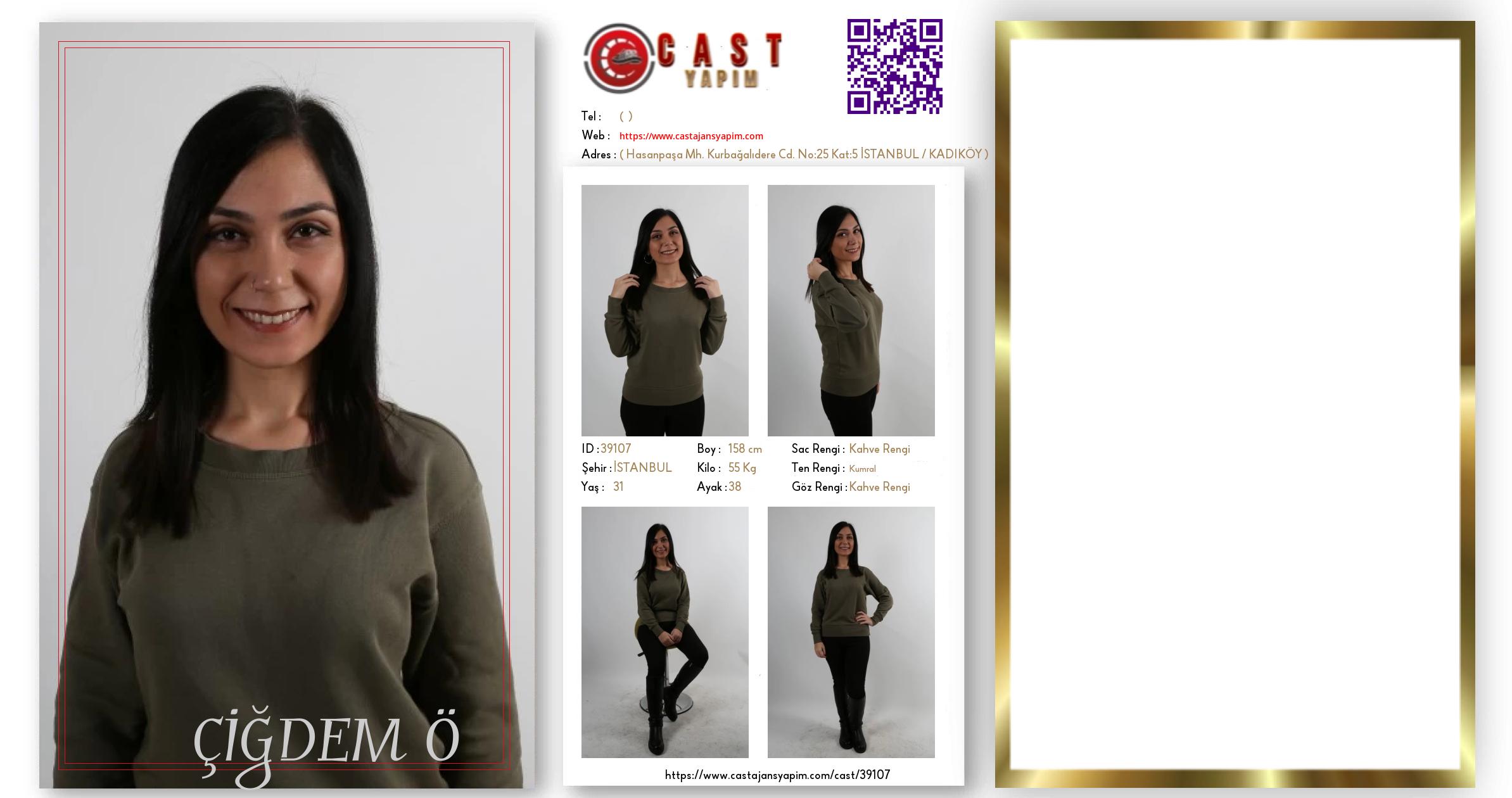 Merhaba, ben ÇİĞDEM. İSTANBUL şehrinde yaşıyorum ve 31 yaşındayım. Genel özelliklerim arasında boyum 158 cm, kilom 55 kg, saç rengim Kahve Rengi, göz rengim Kahve Rengi, ten rengim Kumral.