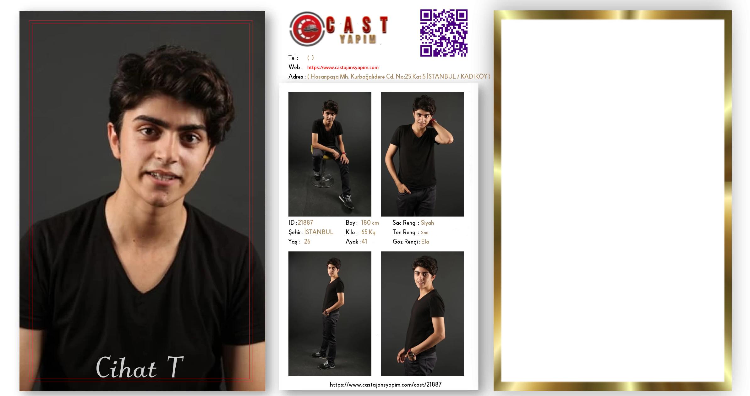 Merhaba, ben Cihat T. İSTANBUL şehrinde yaşıyorum ve 26 yaşındayım. Genel özelliklerim arasında boyum 180 cm, kilom 65 kg, saç rengim Siyah, göz rengim Ela, ten rengim Sarı.