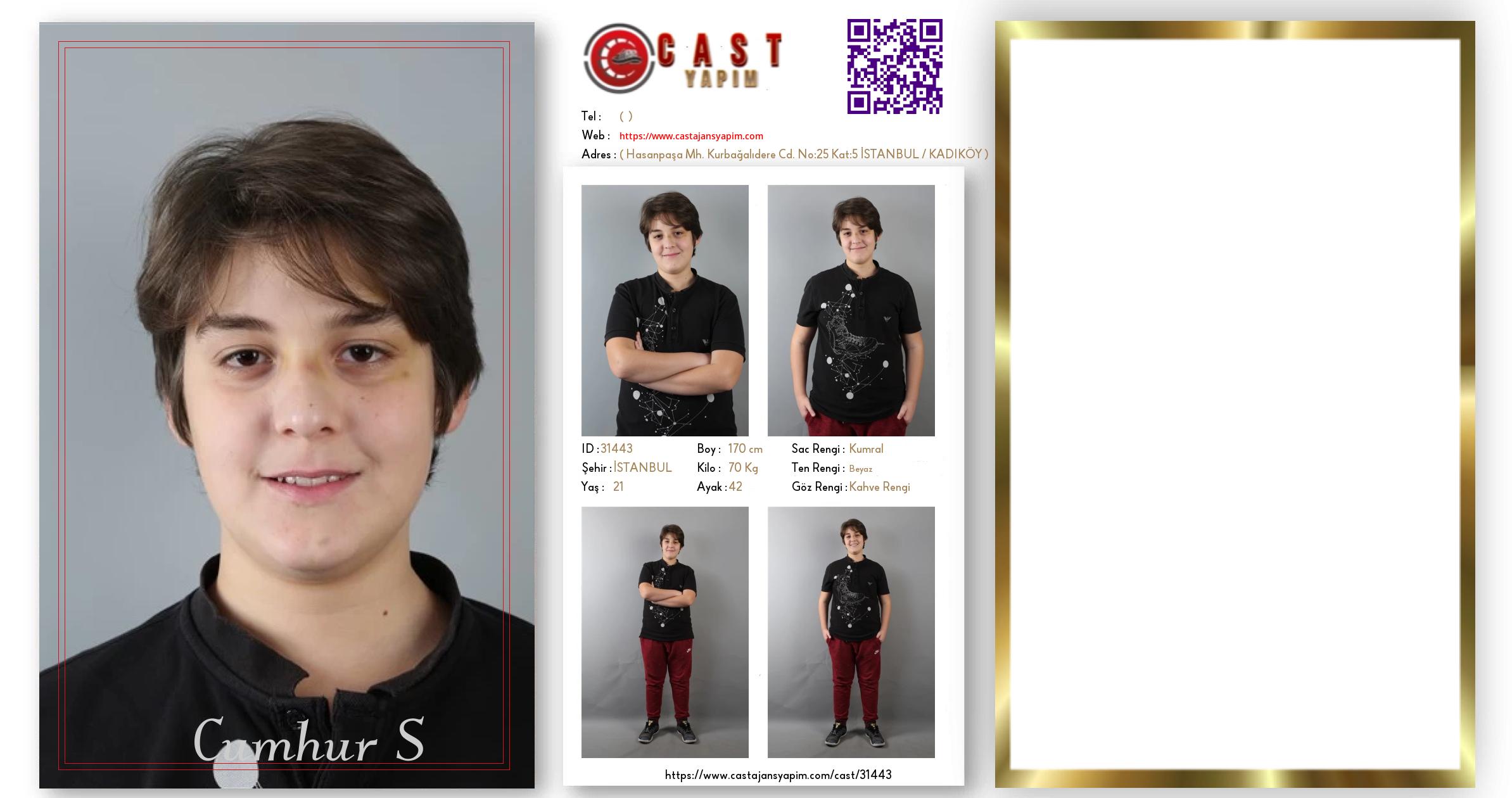 Merhaba, ben Cumhur. İSTANBUL şehrinde yaşıyorum ve 21 yaşındayım. Genel özelliklerim arasında boyum 170 cm, kilom 70 kg, saç rengim Kumral, göz rengim Kahve Rengi, ten rengim Beyaz.