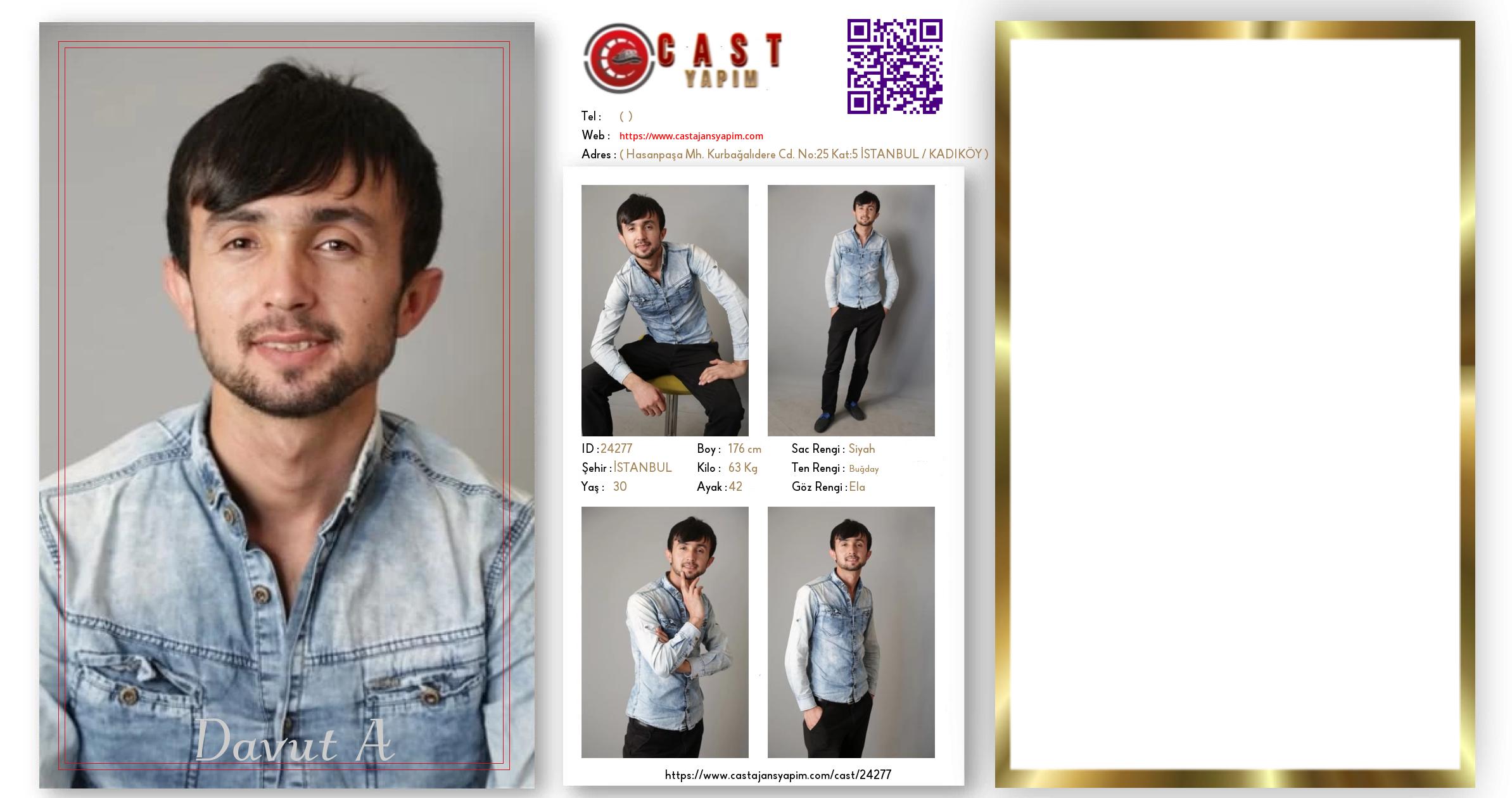 Merhaba, ben Davut. İSTANBUL şehrinde yaşıyorum ve 30 yaşındayım. Genel özelliklerim arasında boyum 176 cm, kilom 63 kg, saç rengim Siyah, göz rengim Ela, ten rengim Buğday.