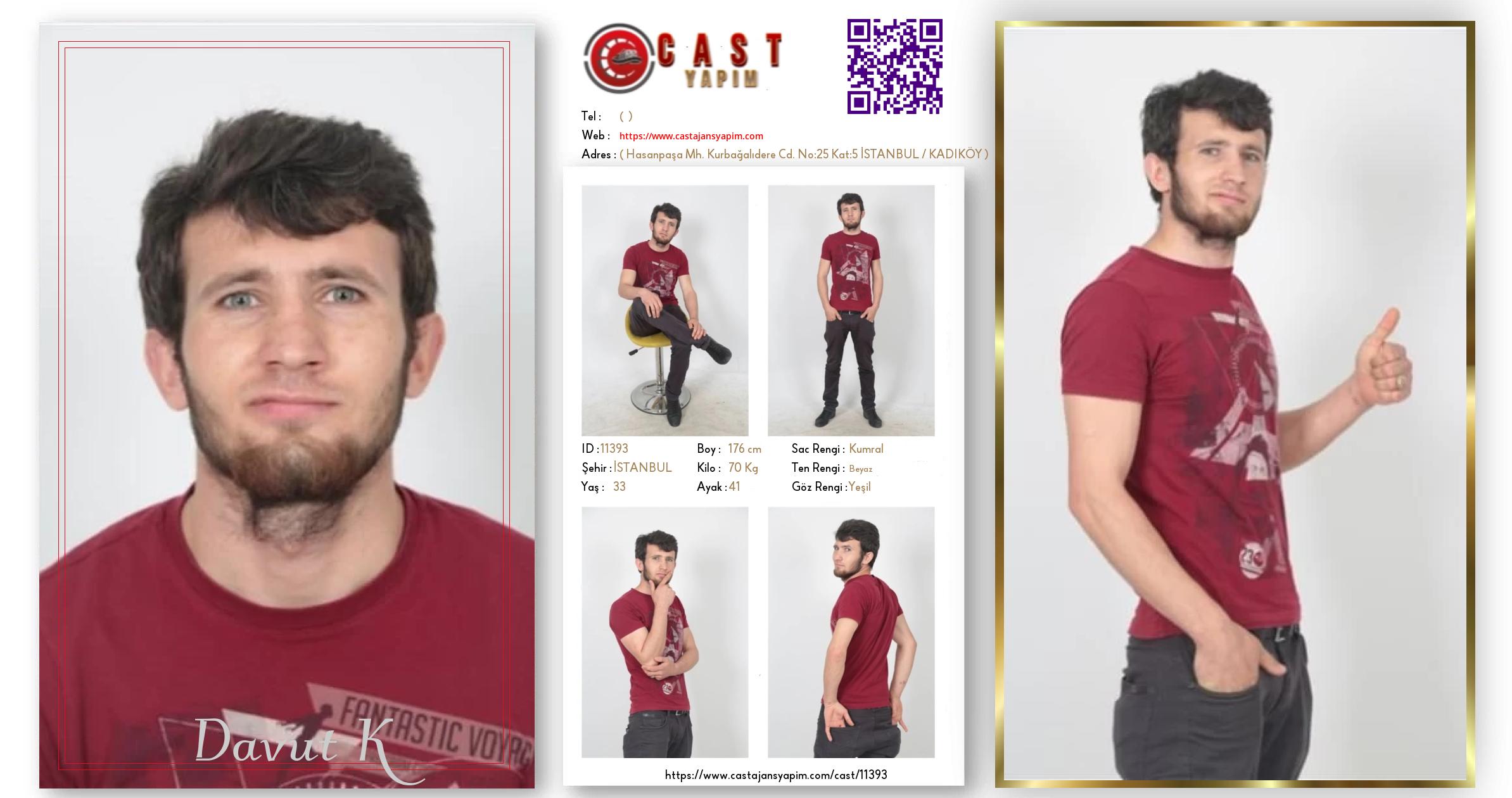 Merhaba, ben Davut K. İSTANBUL şehrinde yaşıyorum ve 33 yaşındayım. Genel özelliklerim arasında boyum 176 cm, kilom 70 kg, saç rengim Kumral, göz rengim Yeşil, ten rengim Beyaz.