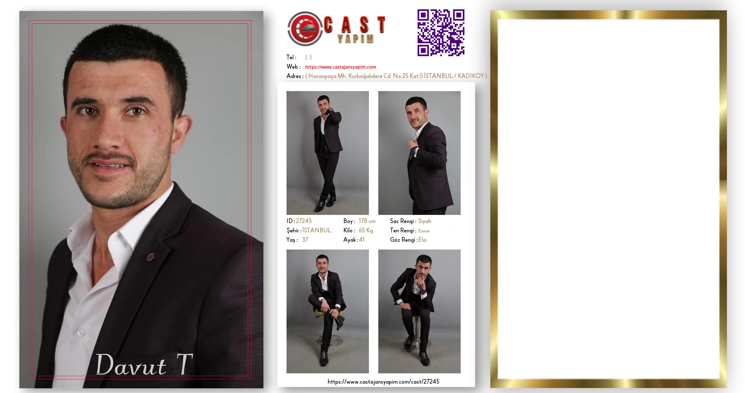 Merhaba, ben Davut T. İSTANBUL şehrinde yaşıyorum ve 37 yaşındayım. Genel özelliklerim arasında boyum 178 cm, kilom 65 kg, saç rengim Siyah, göz rengim Ela, ten rengim Esmer.