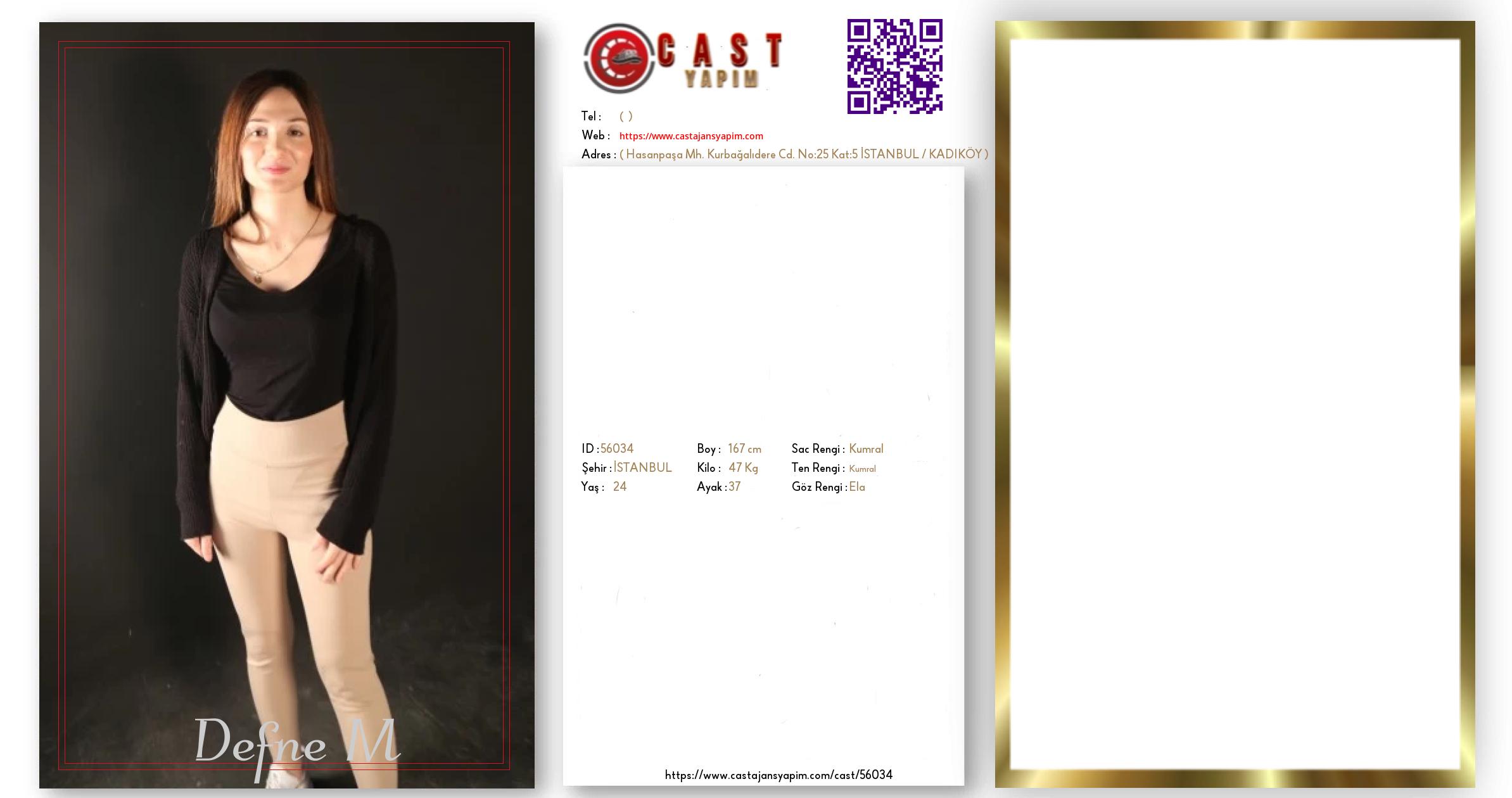 Merhaba, ben Defne M. İSTANBUL şehrinde yaşıyorum ve 24 yaşındayım. Genel özelliklerim arasında boyum 167 cm, kilom 47 kg, saç rengim Kumral, göz rengim Ela, ten rengim Kumral.