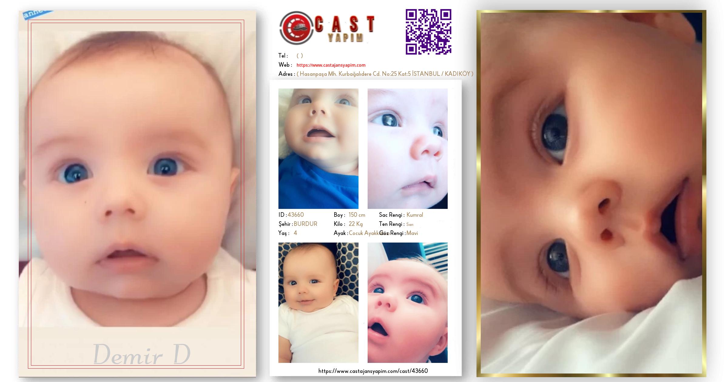 Merhaba, ben Demir D. BURDUR şehrinde yaşıyorum ve 4 yaşındayım. Genel özelliklerim arasında boyum 150 cm, kilom 22 kg, saç rengim Kumral, göz rengim Mavi, ten rengim Sarı.