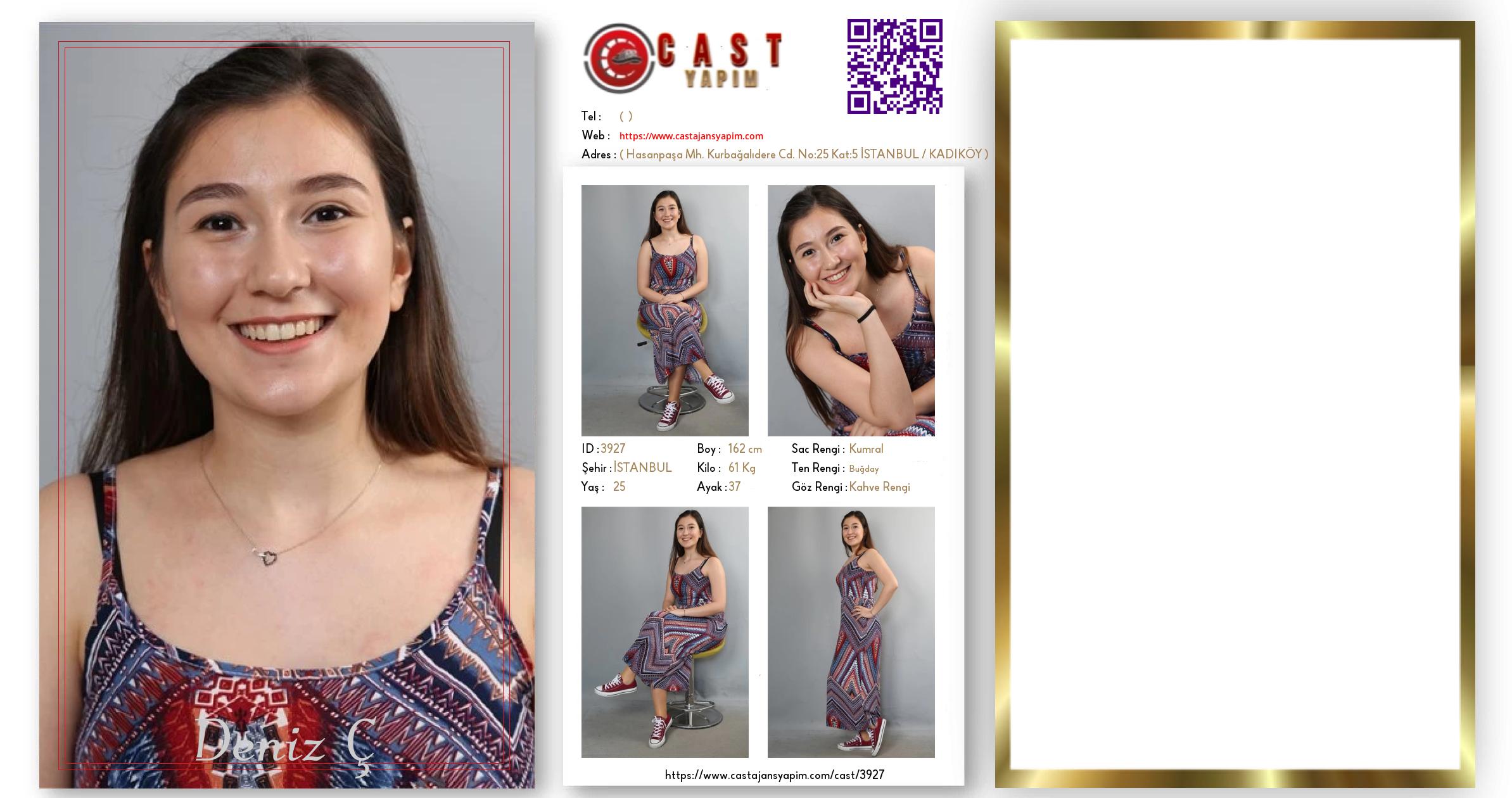 Merhaba, ben Deniz Ç. İSTANBUL şehrinde yaşıyorum ve 25 yaşındayım. Genel özelliklerim arasında boyum 162 cm, kilom 61 kg, saç rengim Kumral, göz rengim Kahve Rengi, ten rengim Buğday.
