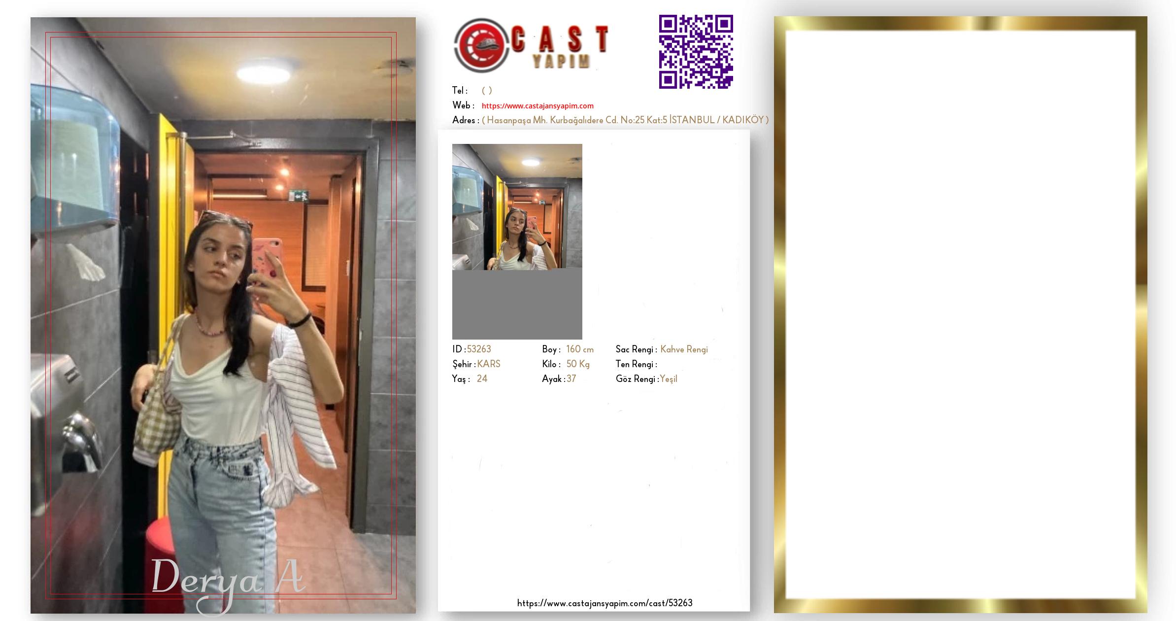 Merhaba, ben Derya A. KARS şehrinde yaşıyorum ve 24 yaşındayım. Genel özelliklerim arasında boyum 160 cm, kilom 50 kg, saç rengim Kahve Rengi, göz rengim Yeşil.