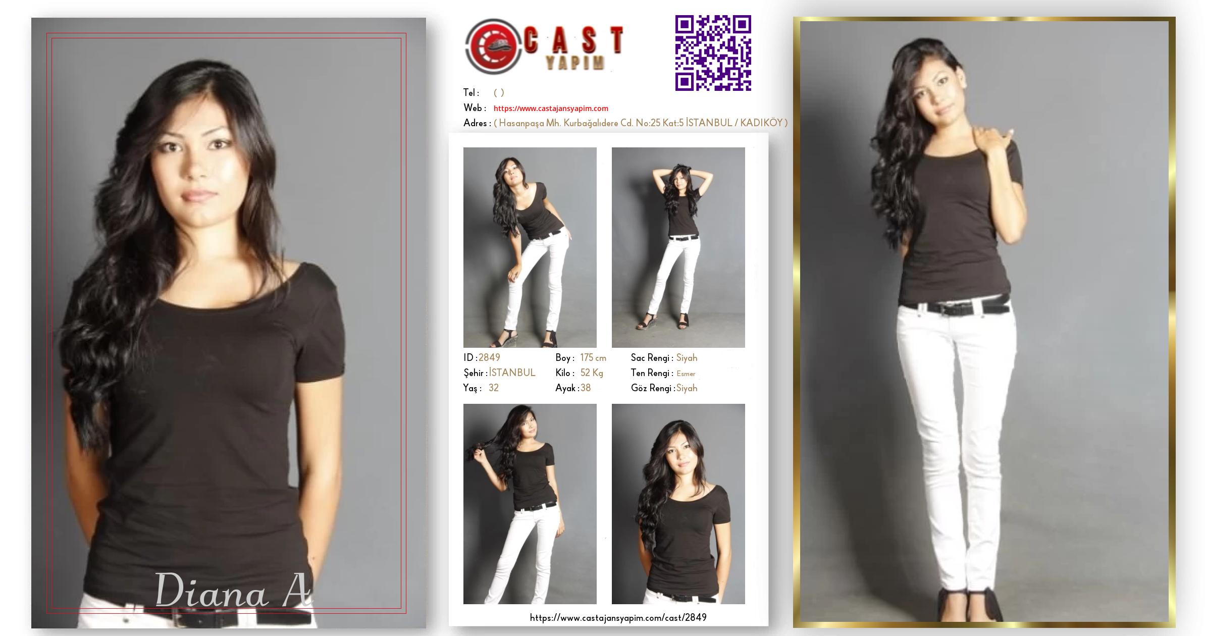 Merhaba, ben Diana A. İSTANBUL şehrinde yaşıyorum ve 32 yaşındayım. Genel özelliklerim arasında boyum 175 cm, kilom 52 kg, saç rengim Siyah, göz rengim Siyah, ten rengim Esmer.
