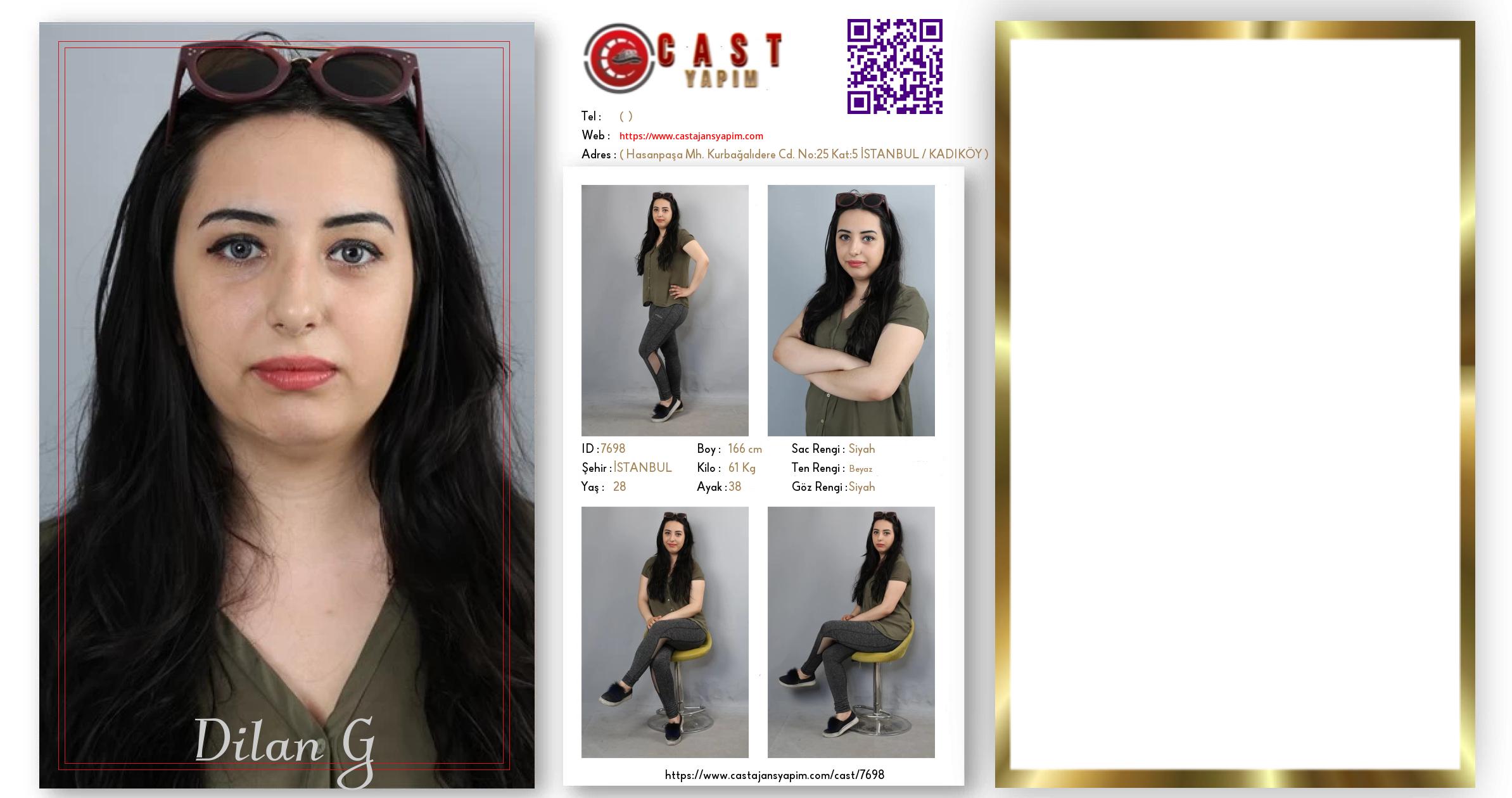 Merhaba, ben Dilan G. İSTANBUL şehrinde yaşıyorum ve 28 yaşındayım. Genel özelliklerim arasında boyum 166 cm, kilom 61 kg, saç rengim Siyah, göz rengim Siyah, ten rengim Beyaz.