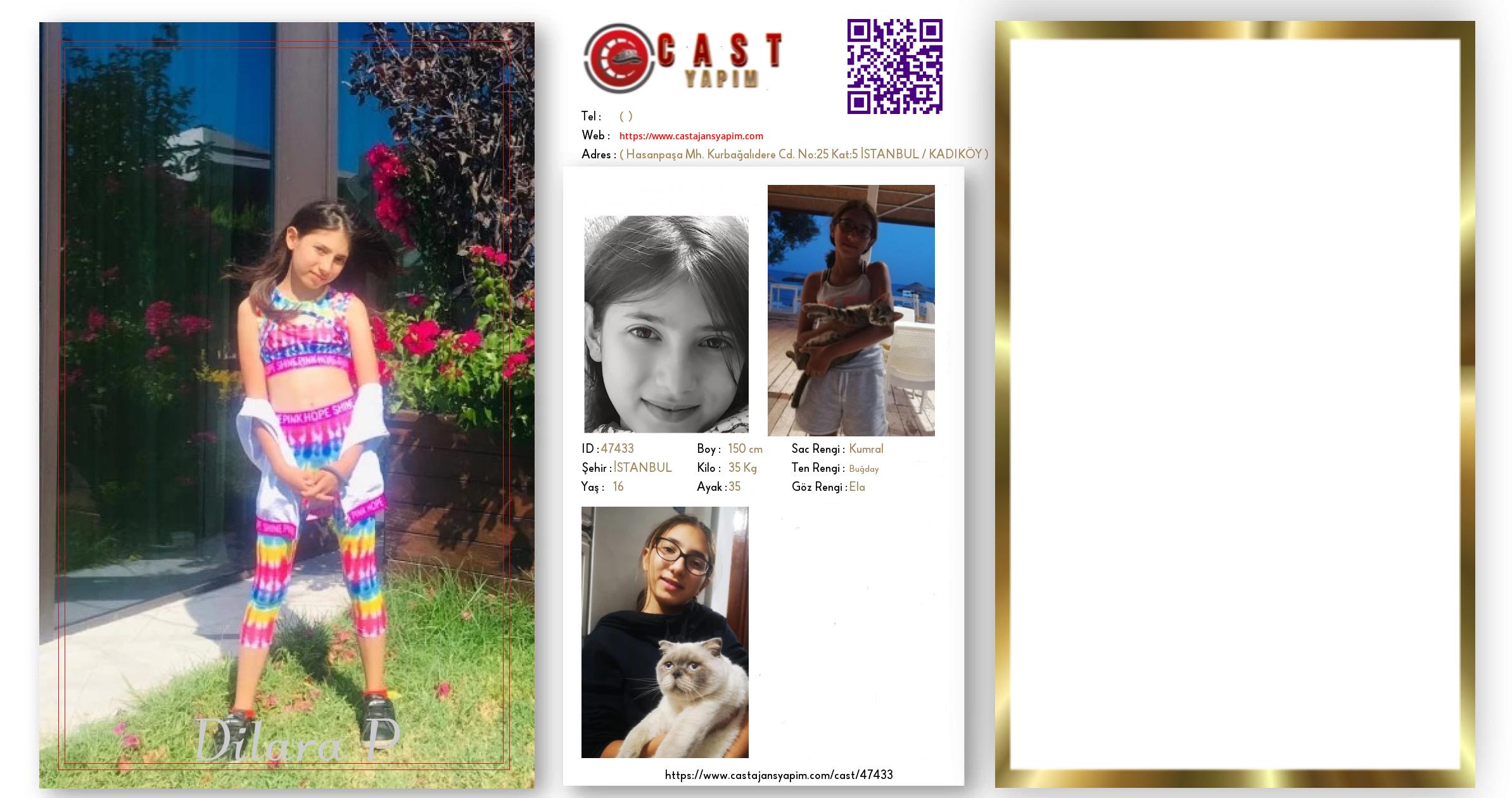 Merhaba, ben Dilara Naz. İSTANBUL şehrinde yaşıyorum ve 16 yaşındayım. Genel özelliklerim arasında boyum 150 cm, kilom 35 kg, saç rengim Kumral, göz rengim Ela, ten rengim Buğday.