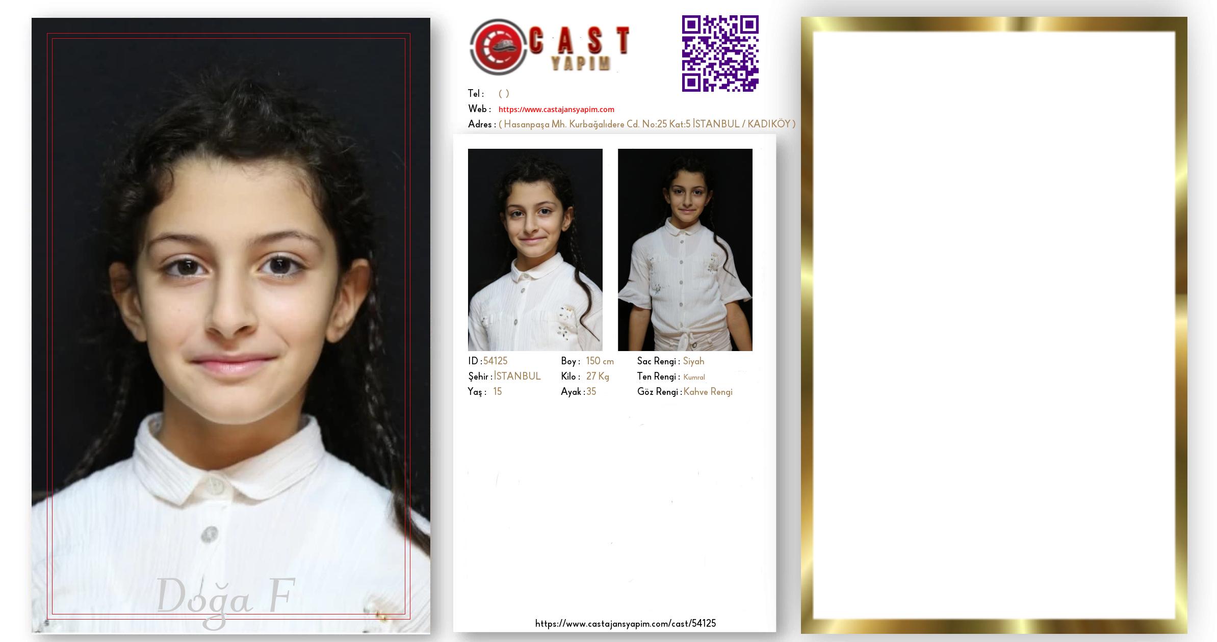 Merhaba, ben Doğa. İSTANBUL şehrinde yaşıyorum ve 15 yaşındayım. Genel özelliklerim arasında boyum 150 cm, kilom 27 kg, saç rengim Siyah, göz rengim Kahve Rengi, ten rengim Kumral.