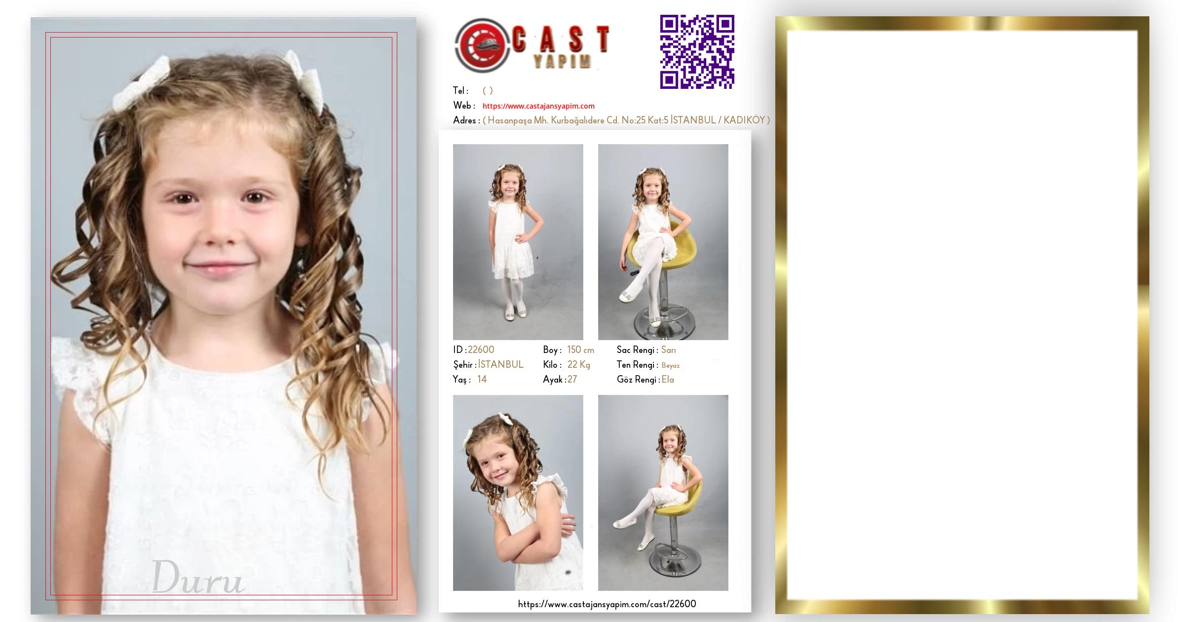 Merhaba, ben Duru . İSTANBUL şehrinde yaşıyorum ve 14 yaşındayım. Genel özelliklerim arasında boyum 150 cm, kilom 22 kg, saç rengim Sarı, göz rengim Ela, ten rengim Beyaz.