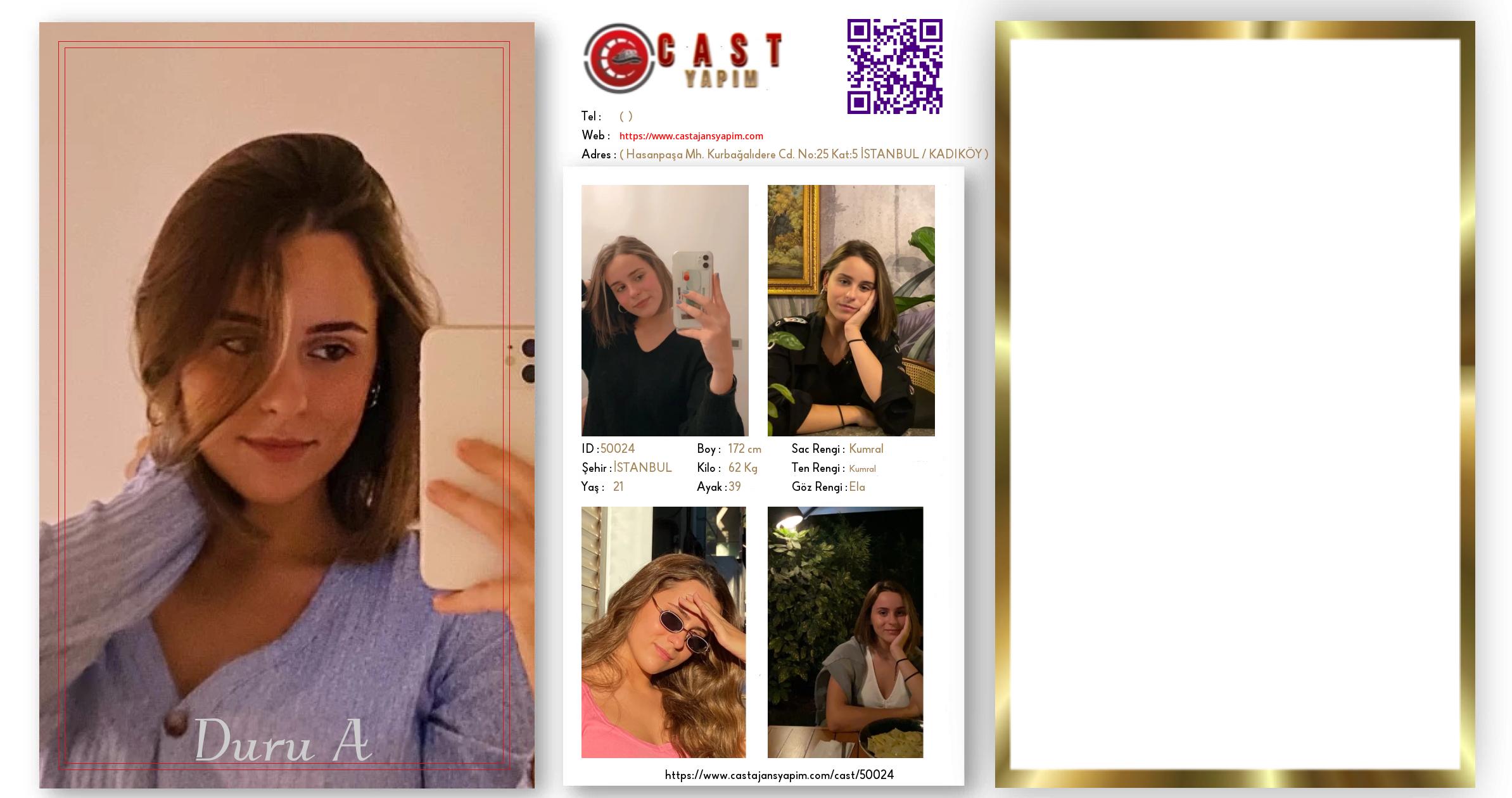 Merhaba, ben Duru A. İSTANBUL şehrinde yaşıyorum ve 21 yaşındayım. Genel özelliklerim arasında boyum 172 cm, kilom 62 kg, saç rengim Kumral, göz rengim Ela, ten rengim Kumral.