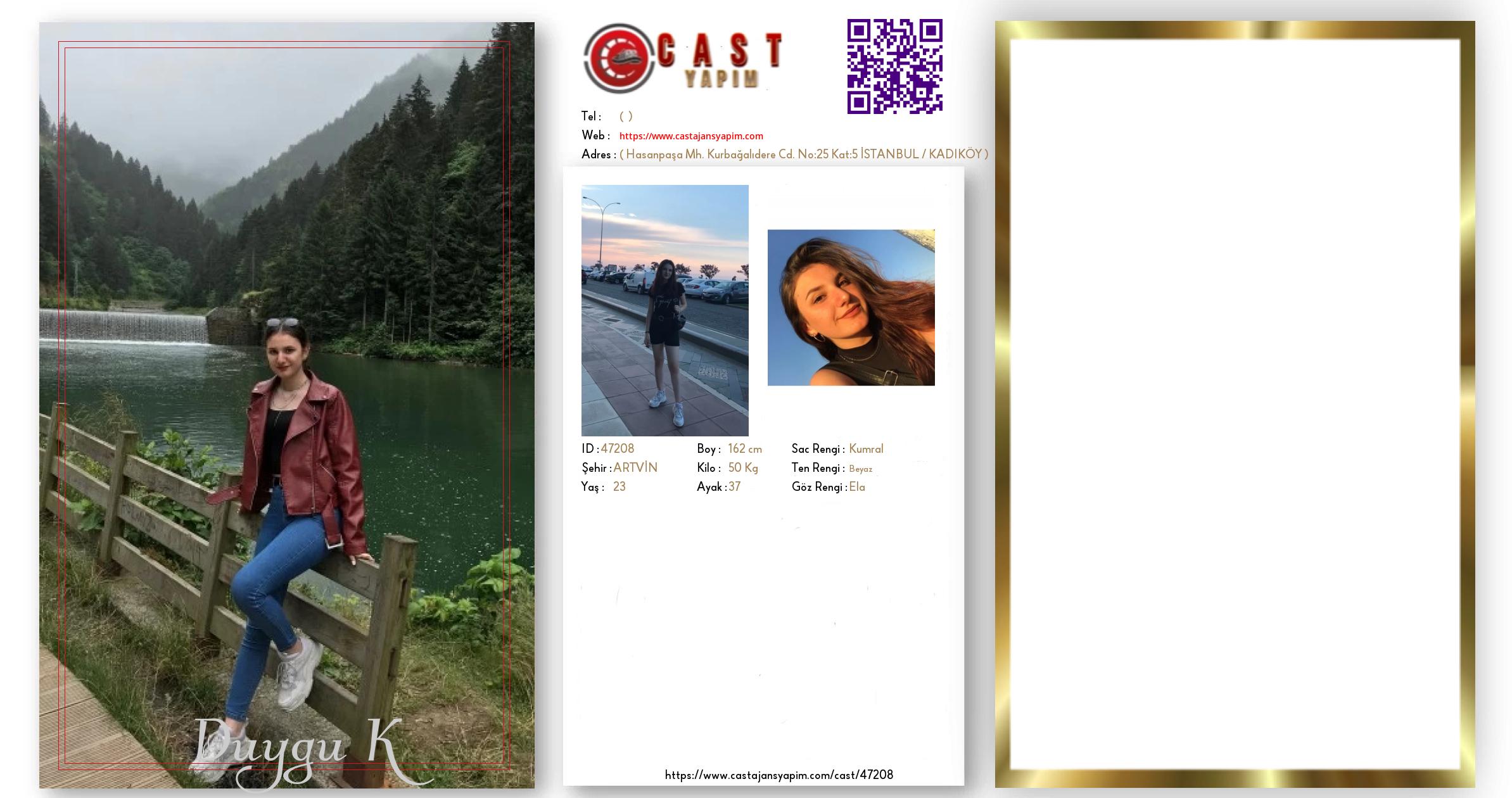 Merhaba, ben Duygu. ARTVİN şehrinde yaşıyorum ve 23 yaşındayım. Genel özelliklerim arasında boyum 162 cm, kilom 50 kg, saç rengim Kumral, göz rengim Ela, ten rengim Beyaz.