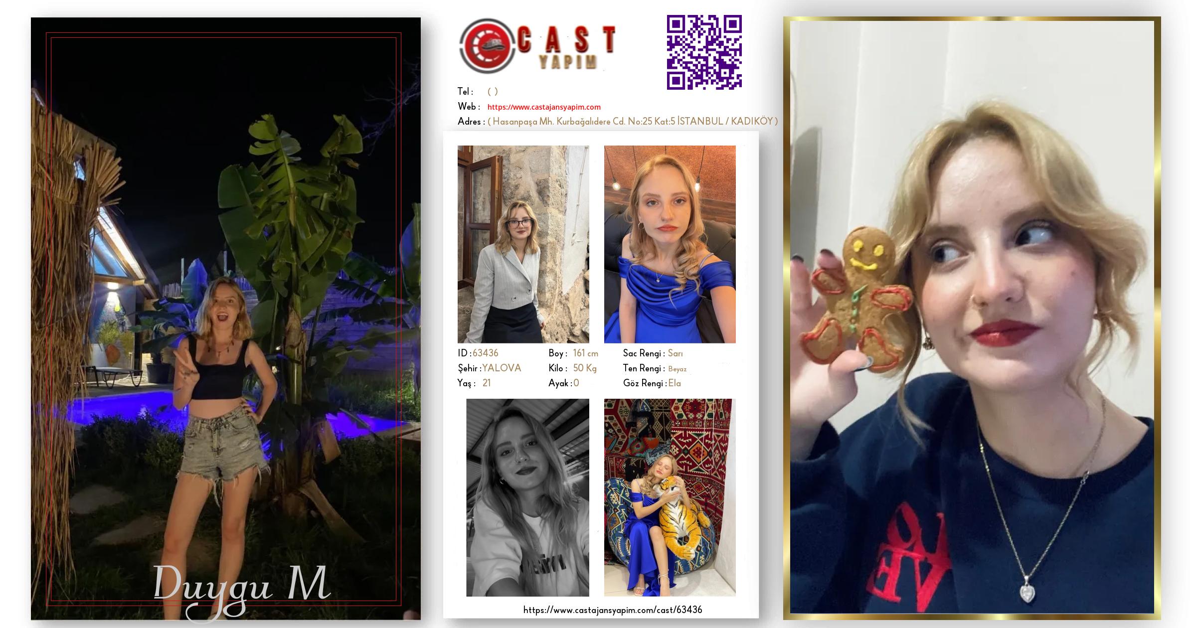 Merhaba, ben Duygu. YALOVA şehrinde yaşıyorum ve 21 yaşındayım. Genel özelliklerim arasında boyum 161 cm, kilom 50 kg, saç rengim Sarı, göz rengim Ela, ten rengim Beyaz.