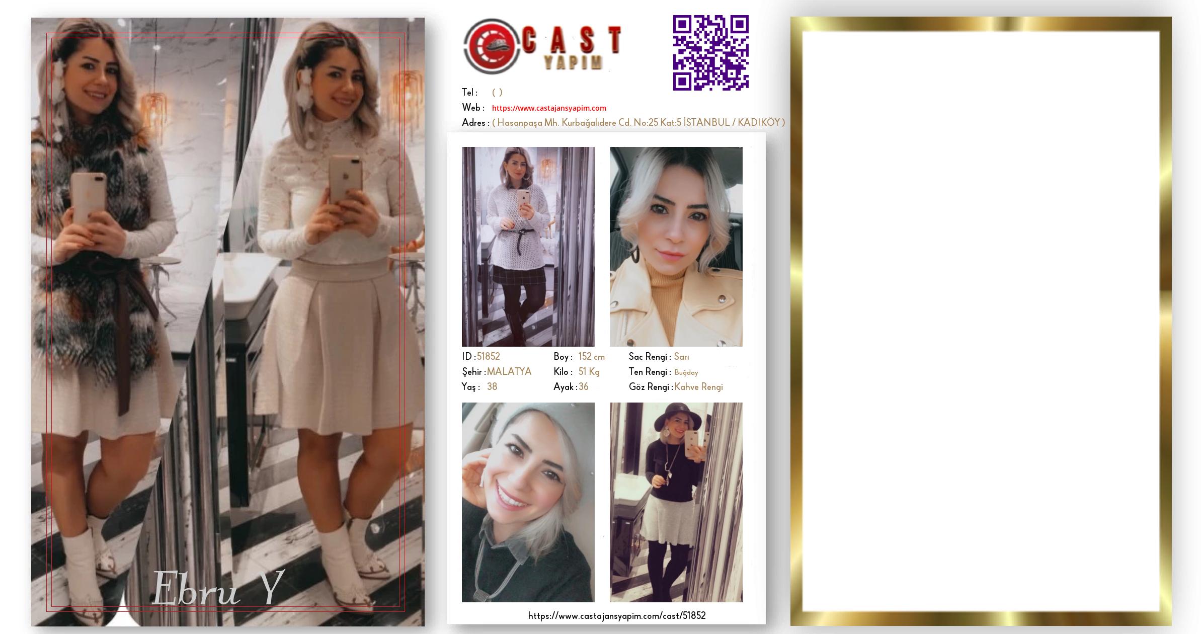 Merhaba, ben Ebru Y. MALATYA şehrinde yaşıyorum ve 38 yaşındayım. Genel özelliklerim arasında boyum 152 cm, kilom 51 kg, saç rengim Sarı, göz rengim Kahve Rengi, ten rengim Buğday.