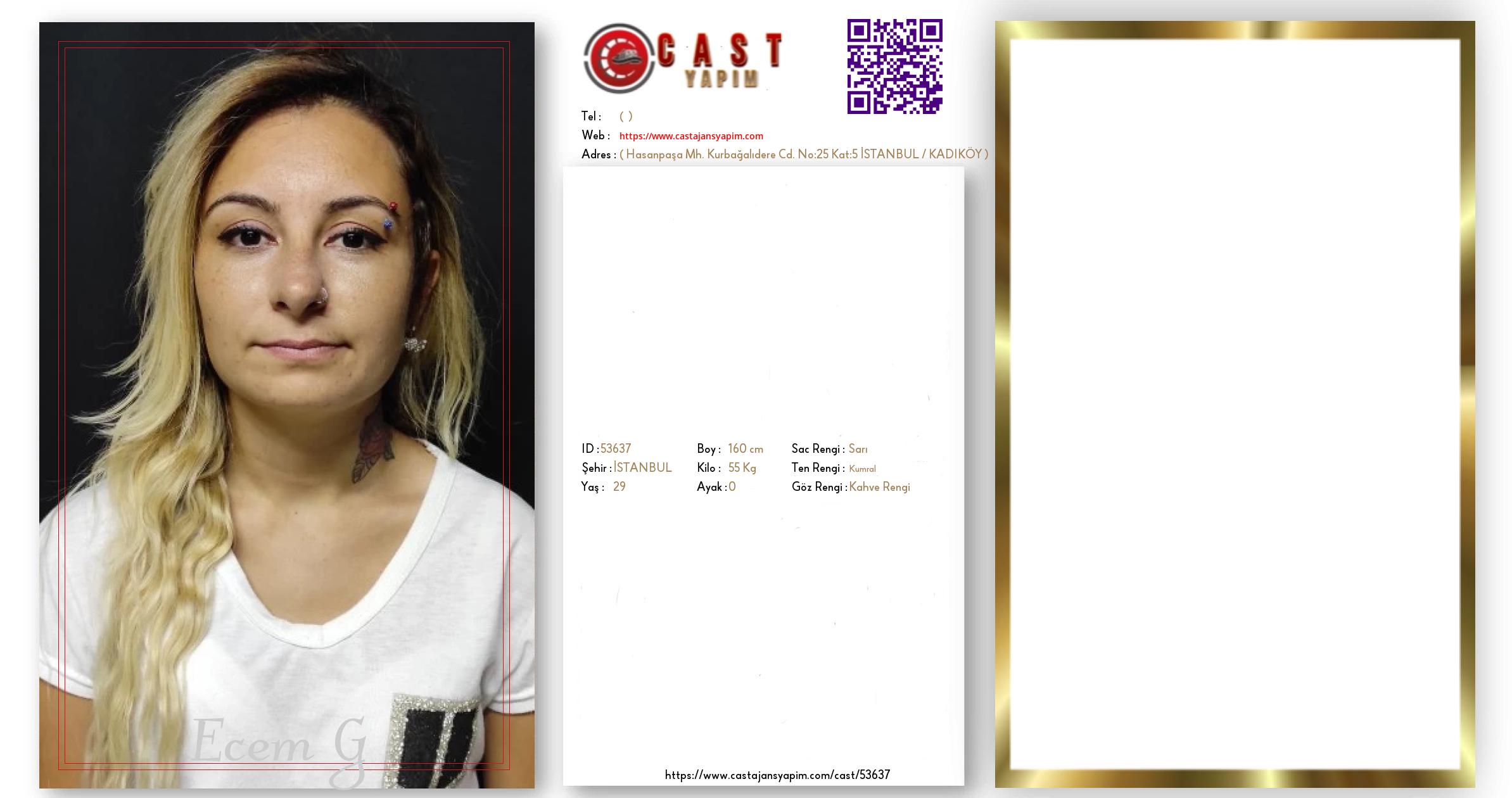 Merhaba, ben Ecem G. İSTANBUL şehrinde yaşıyorum ve 29 yaşındayım. Genel özelliklerim arasında boyum 160 cm, kilom 55 kg, saç rengim Sarı, göz rengim Kahve Rengi, ten rengim Kumral.