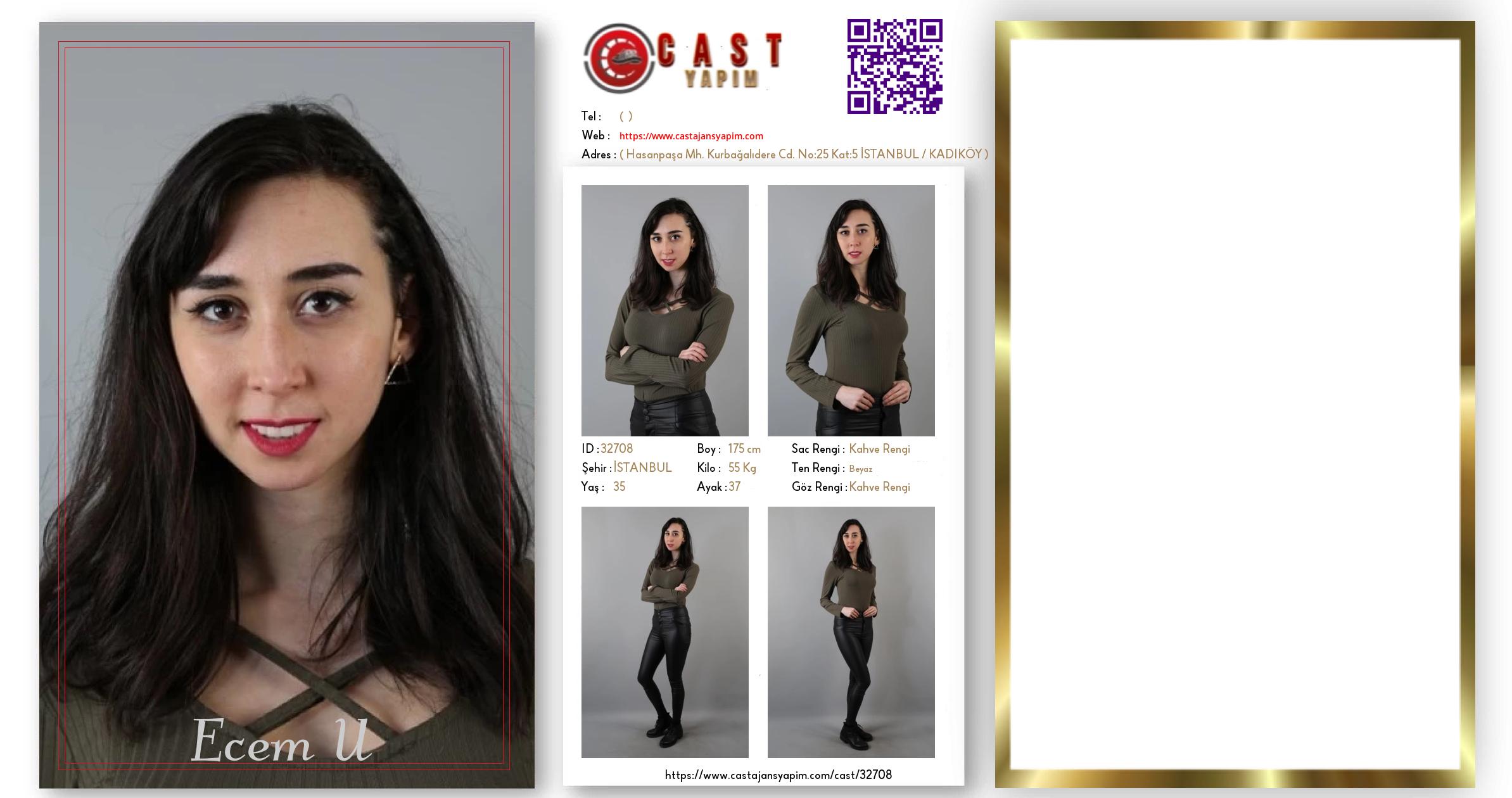 Merhaba, ben Ecem U. İSTANBUL şehrinde yaşıyorum ve 35 yaşındayım. Genel özelliklerim arasında boyum 175 cm, kilom 55 kg, saç rengim Kahve Rengi, göz rengim Kahve Rengi, ten rengim Beyaz.