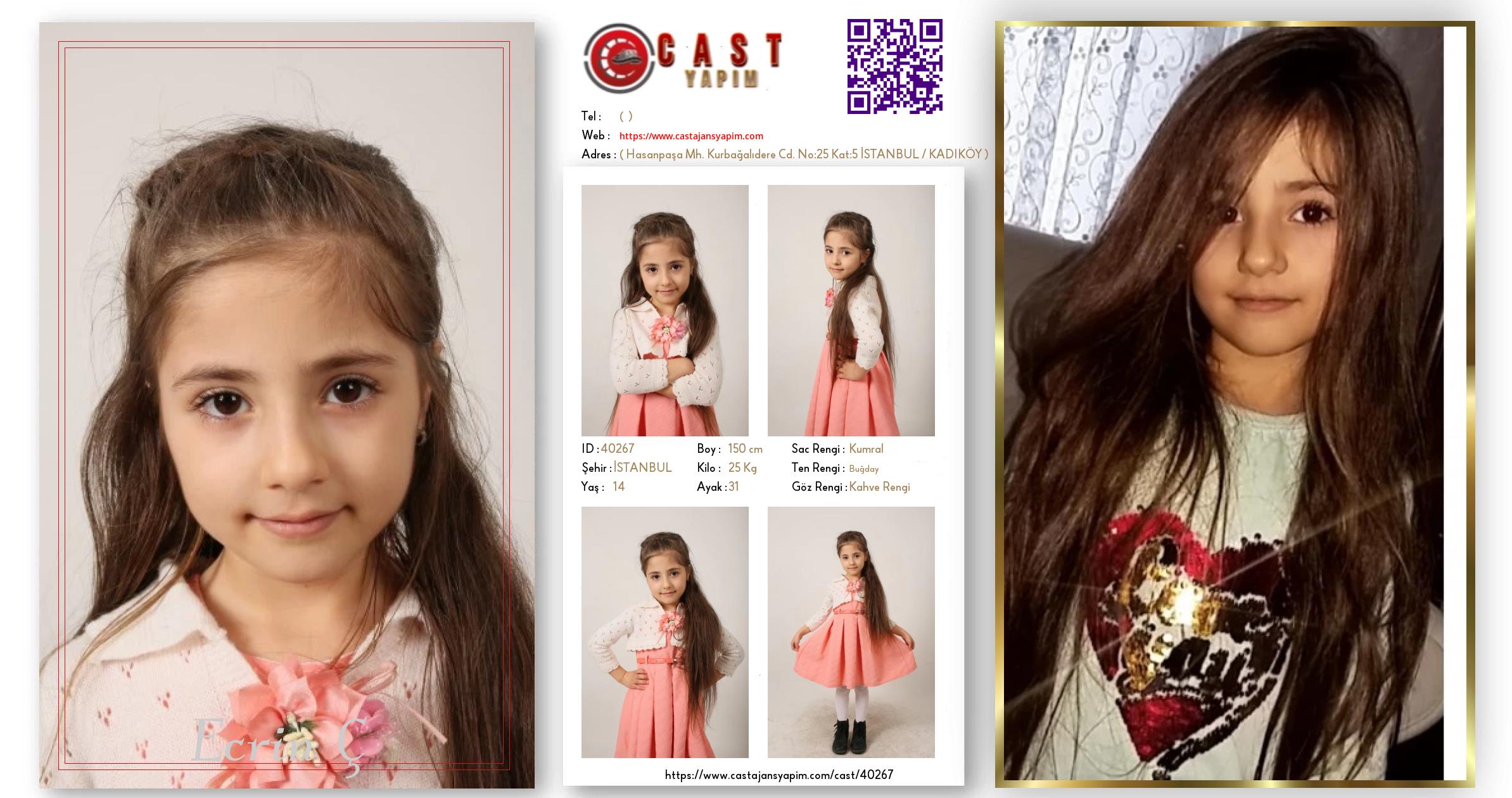 Merhaba, ben Ecrin Ç. İSTANBUL şehrinde yaşıyorum ve 14 yaşındayım. Genel özelliklerim arasında boyum 150 cm, kilom 25 kg, saç rengim Kumral, göz rengim Kahve Rengi, ten rengim Buğday.