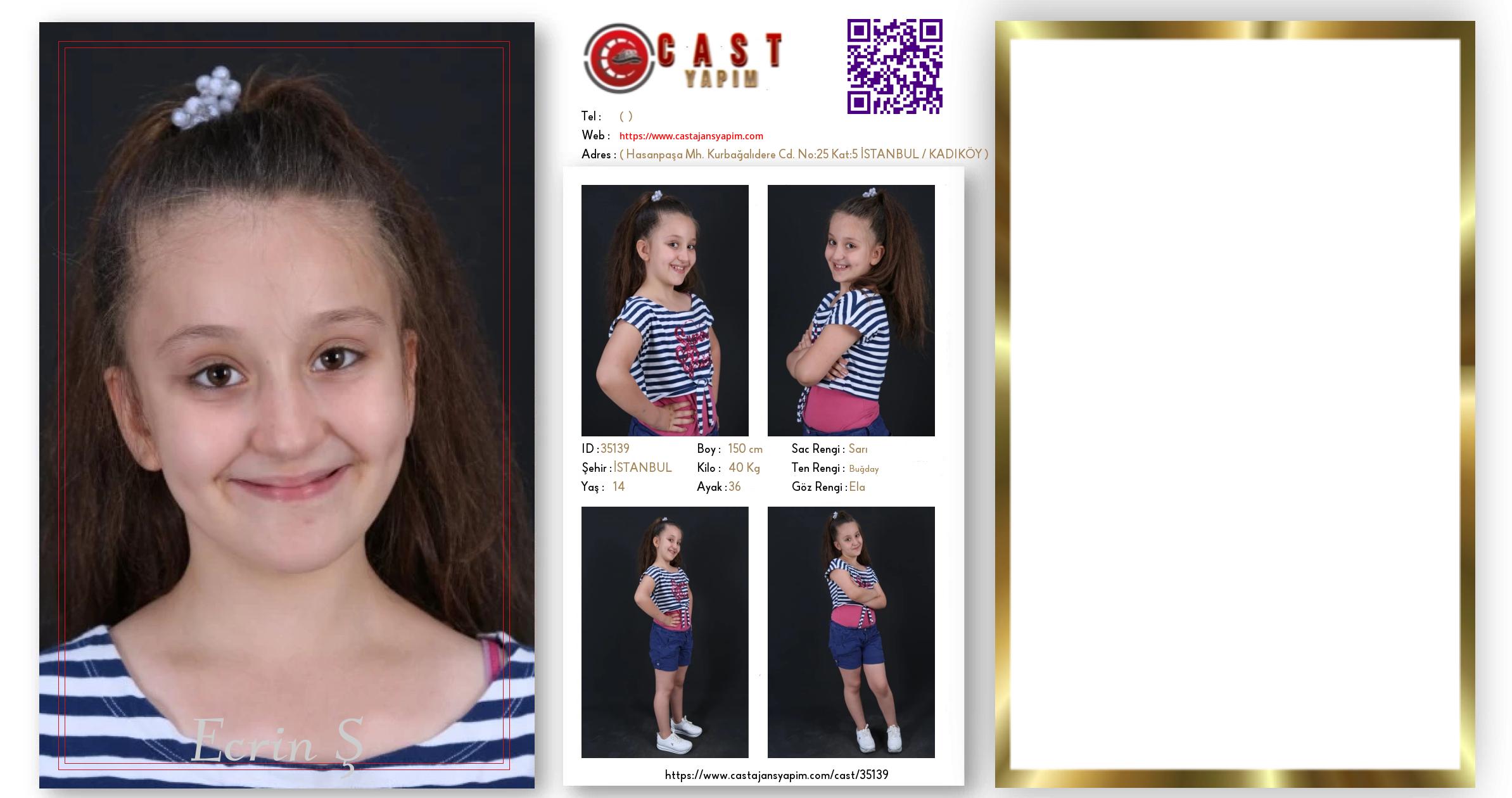 Merhaba, ben Ecrin Ş. İSTANBUL şehrinde yaşıyorum ve 14 yaşındayım. Genel özelliklerim arasında boyum 150 cm, kilom 40 kg, saç rengim Sarı, göz rengim Ela, ten rengim Buğday.