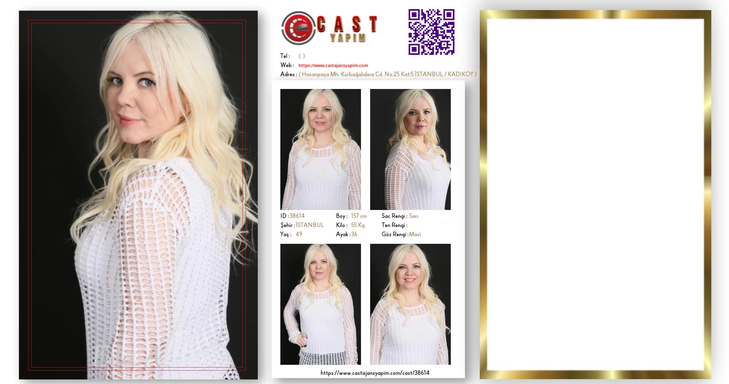 Merhaba, ben Eda A. İSTANBUL şehrinde yaşıyorum ve 49 yaşındayım. Genel özelliklerim arasında boyum 157 cm, kilom 55 kg, saç rengim Sarı, göz rengim Mavi.