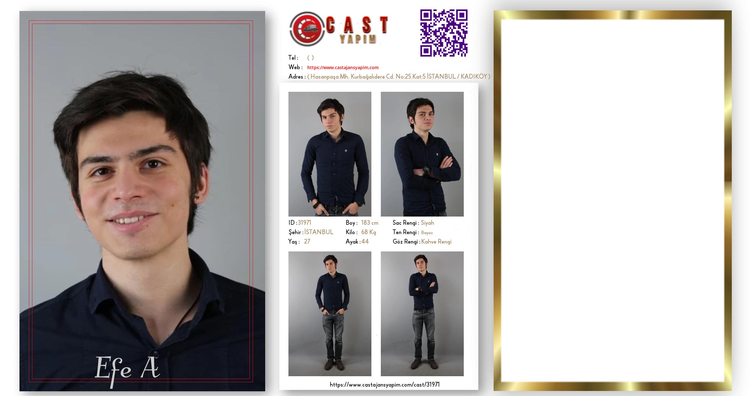 Merhaba, ben Efe A. İSTANBUL şehrinde yaşıyorum ve 27 yaşındayım. Genel özelliklerim arasında boyum 183 cm, kilom 68 kg, saç rengim Siyah, göz rengim Kahve Rengi, ten rengim Beyaz.