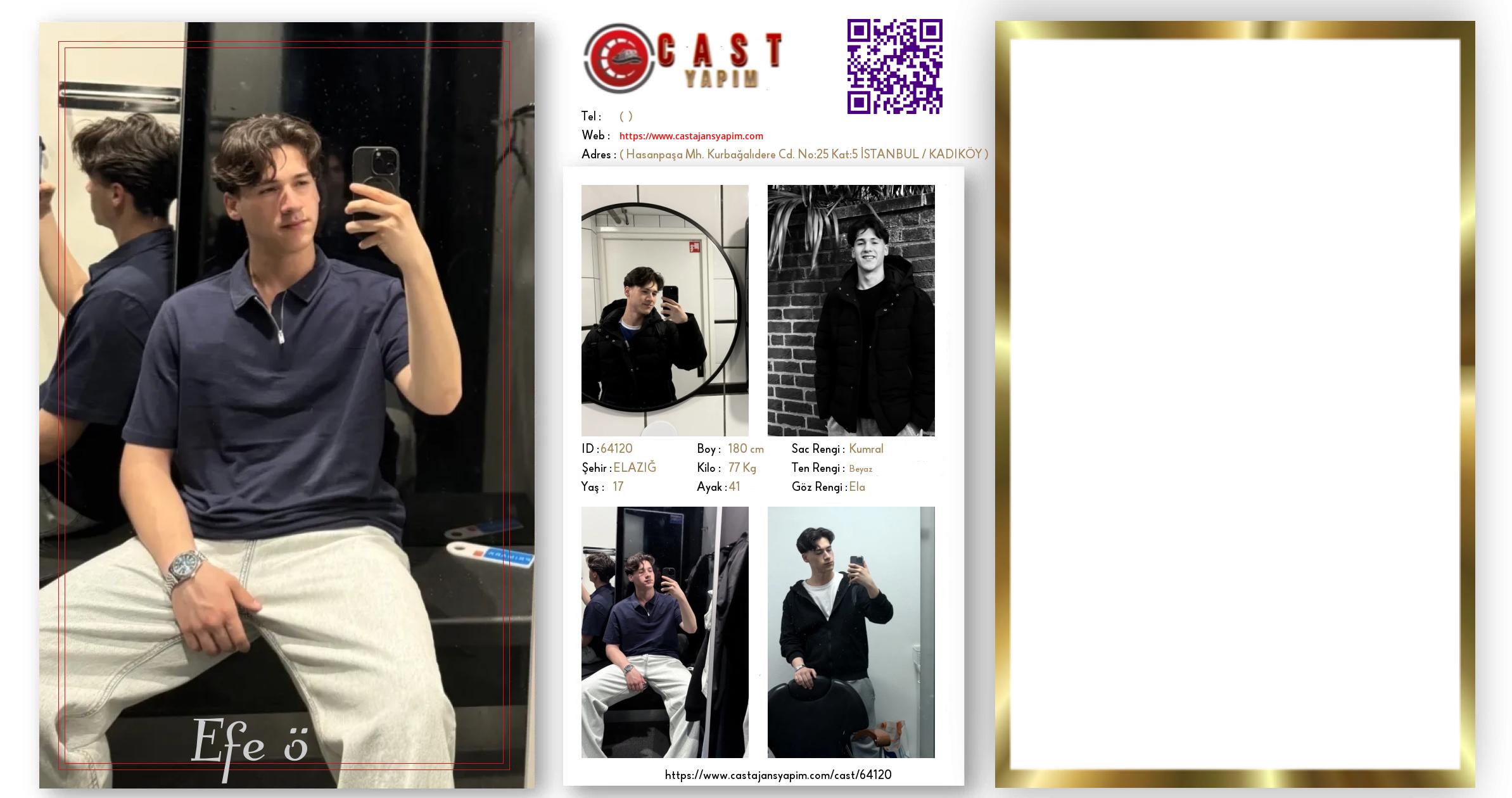 Merhaba, ben Efe Efraim. ELAZIĞ şehrinde yaşıyorum ve 17 yaşındayım. Genel özelliklerim arasında boyum 180 cm, kilom 77 kg, saç rengim Kumral, göz rengim Ela, ten rengim Beyaz.