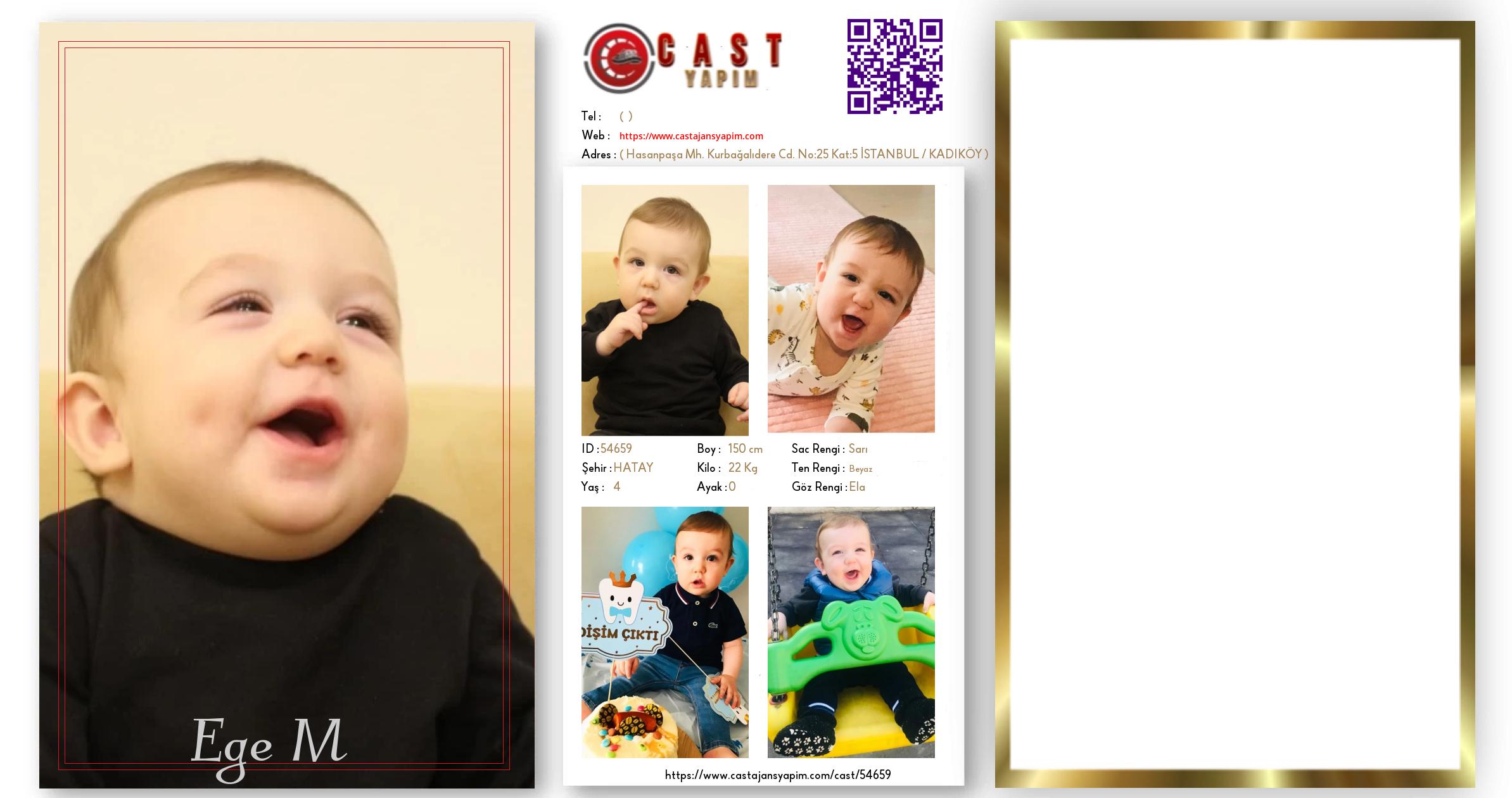 Merhaba, ben Ege. HATAY şehrinde yaşıyorum ve 4 yaşındayım. Genel özelliklerim arasında boyum 150 cm, kilom 22 kg, saç rengim Sarı, göz rengim Ela, ten rengim Beyaz.