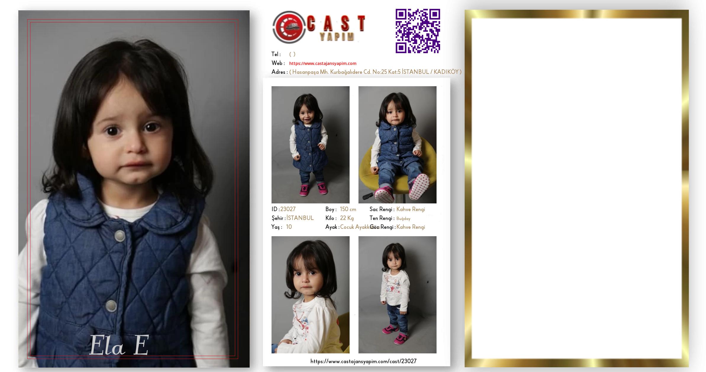 Merhaba, ben Ela E. İSTANBUL şehrinde yaşıyorum ve 10 yaşındayım. Genel özelliklerim arasında boyum 150 cm, kilom 22 kg, saç rengim Kahve Rengi, göz rengim Kahve Rengi, ten rengim Buğday.