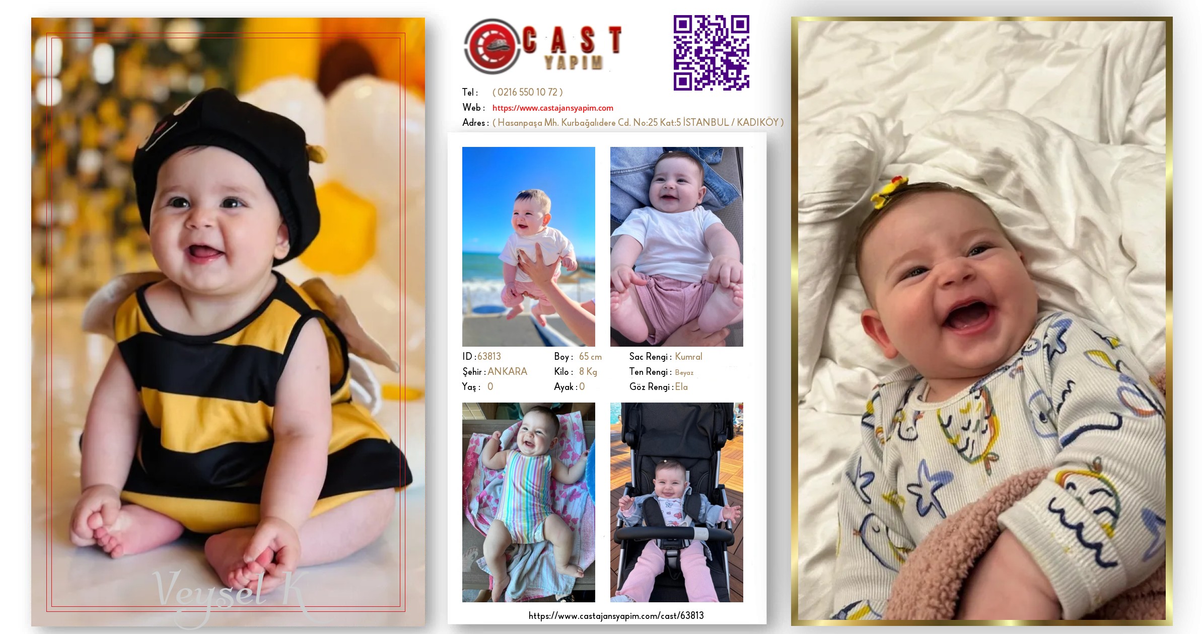 Merhaba, ben Ela. ANKARA şehrinde yaşıyorum ve 1 yaşındayım. Genel özelliklerim arasında boyum 65 cm, kilom 8 kg, saç rengim Kumral, göz rengim Ela, ten rengim Beyaz.