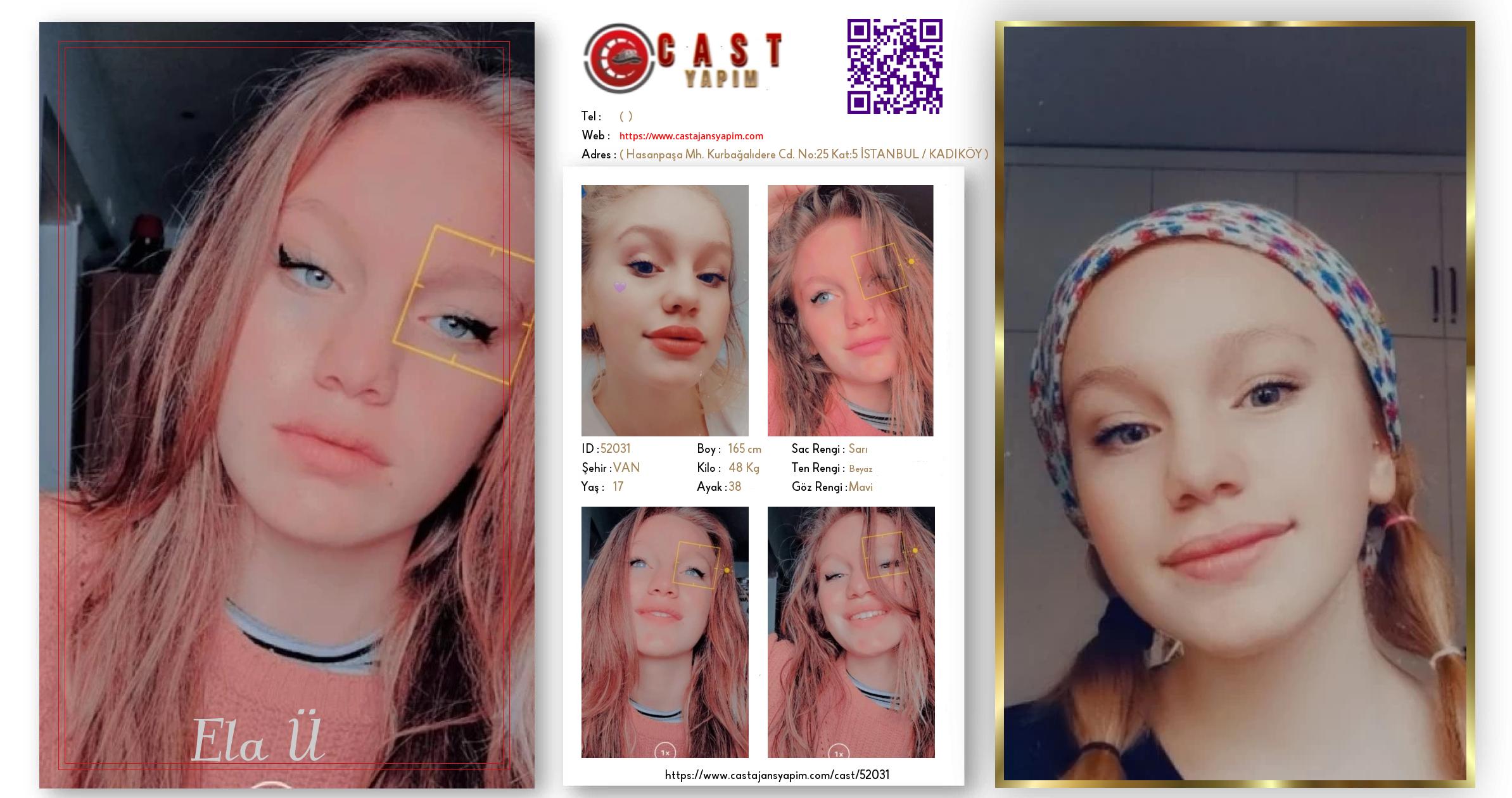 Merhaba, ben Ela Ü. VAN şehrinde yaşıyorum ve 17 yaşındayım. Genel özelliklerim arasında boyum 165 cm, kilom 48 kg, saç rengim Sarı, göz rengim Mavi, ten rengim Beyaz.