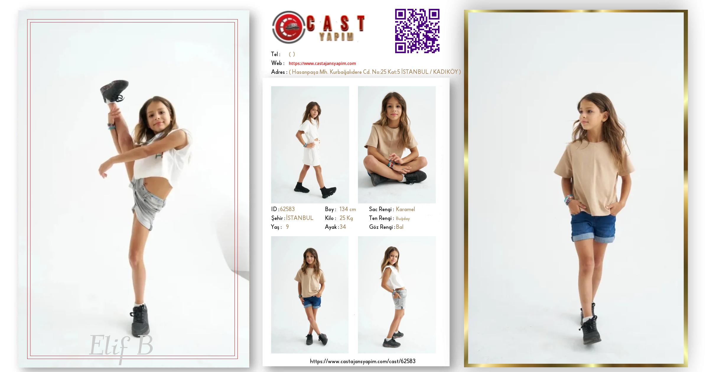 Merhaba, ben Elif B. İSTANBUL şehrinde yaşıyorum ve 9 yaşındayım. Genel özelliklerim arasında boyum 134 cm, kilom 25 kg, saç rengim Karamel, göz rengim Bal, ten rengim Buğday.