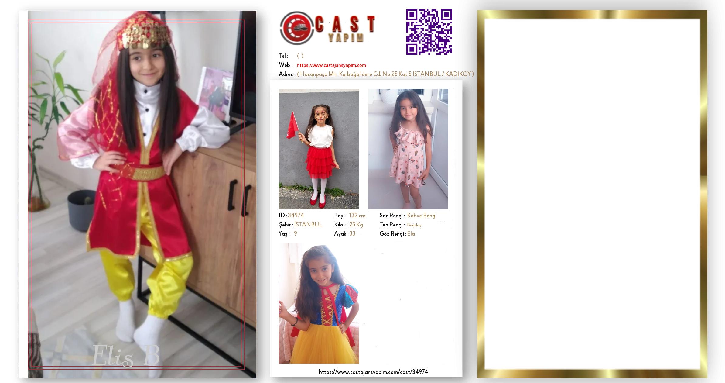 Merhaba, ben Elis. İSTANBUL şehrinde yaşıyorum ve 9 yaşındayım. Genel özelliklerim arasında boyum 132 cm, kilom 25 kg, saç rengim Kahve Rengi, göz rengim Ela, ten rengim Buğday.