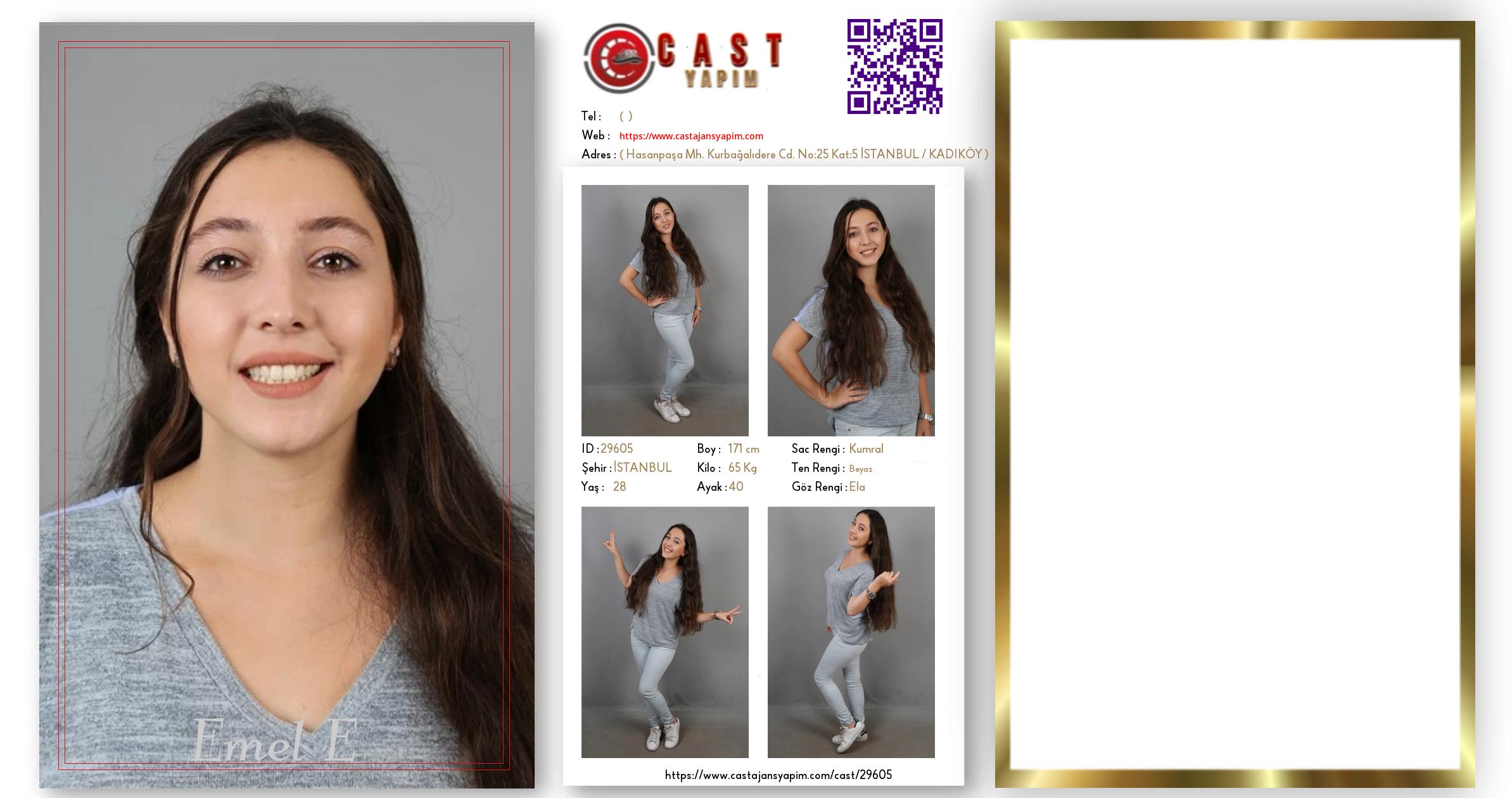 Merhaba, ben Emel Bafandeh. İSTANBUL şehrinde yaşıyorum ve 28 yaşındayım. Genel özelliklerim arasında boyum 171 cm, kilom 65 kg, saç rengim Kumral, göz rengim Ela, ten rengim Beyaz.