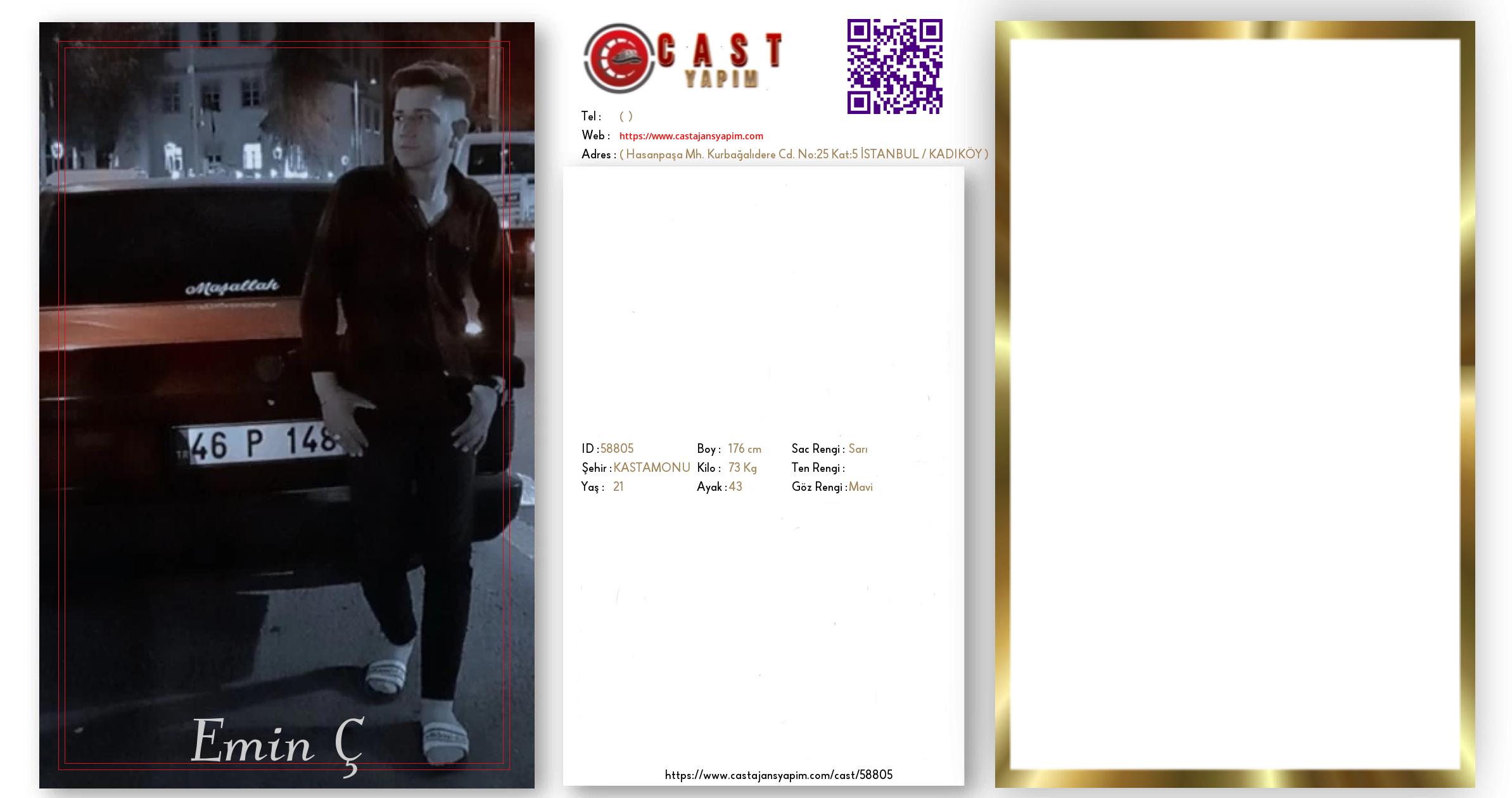 Merhaba, ben Emin Ç. KASTAMONU şehrinde yaşıyorum ve 21 yaşındayım. Genel özelliklerim arasında boyum 176 cm, kilom 73 kg, saç rengim Sarı, göz rengim Mavi.