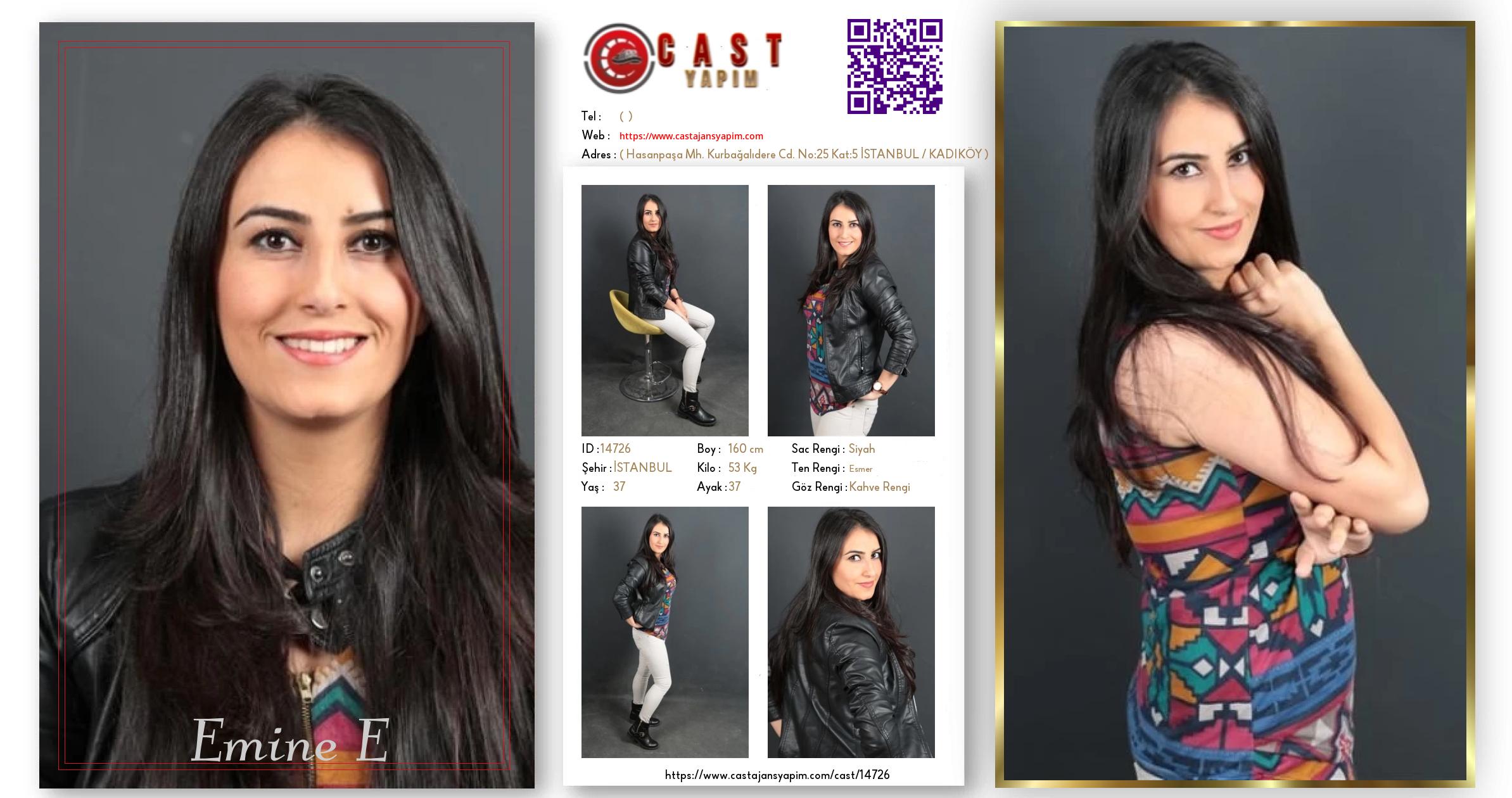 Merhaba, ben Emine E. İSTANBUL şehrinde yaşıyorum ve 37 yaşındayım. Genel özelliklerim arasında boyum 160 cm, kilom 53 kg, saç rengim Siyah, göz rengim Kahve Rengi, ten rengim Esmer.
