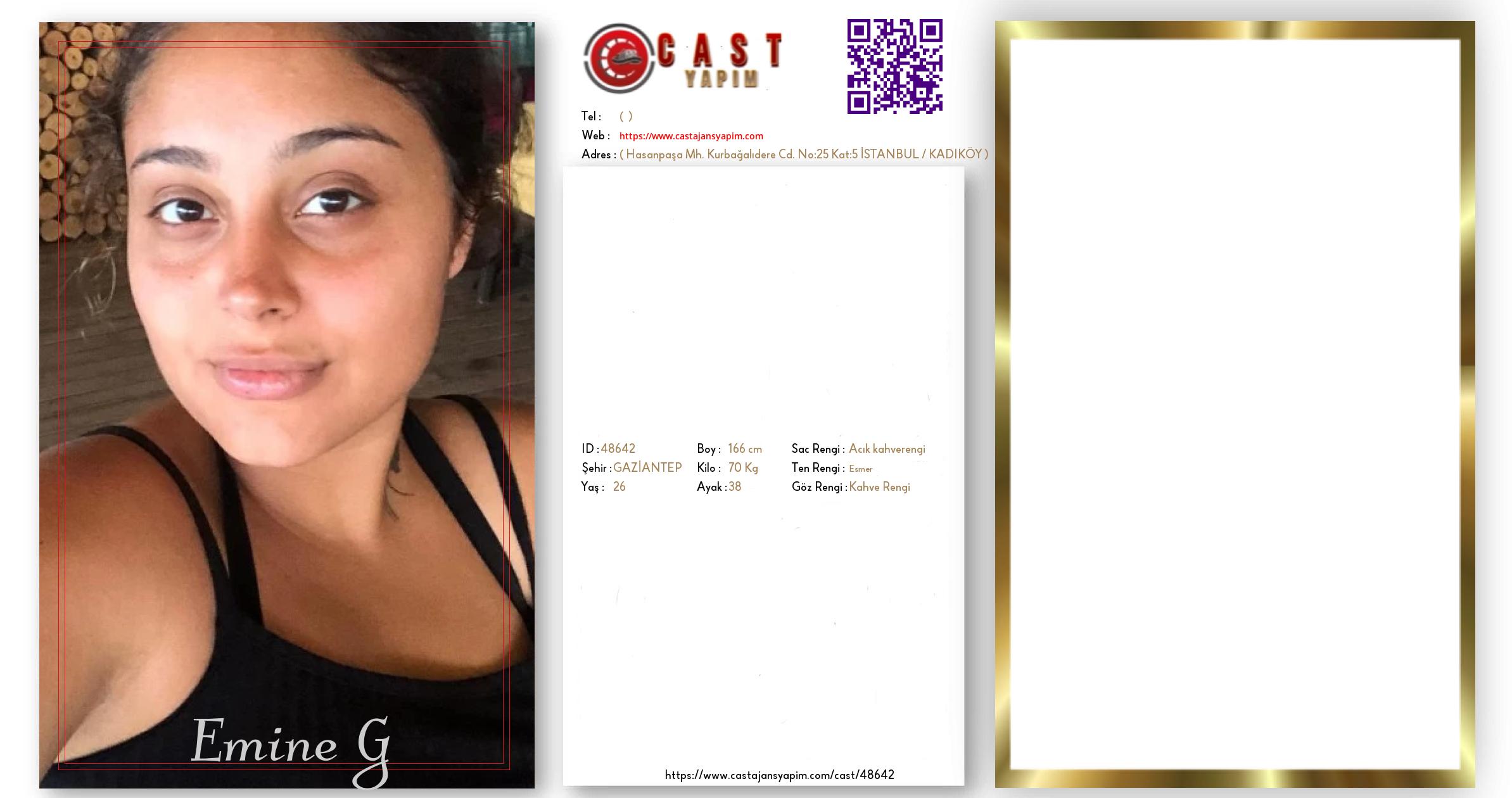 Merhaba, ben Emine Yaren. GAZİANTEP şehrinde yaşıyorum ve 26 yaşındayım. Genel özelliklerim arasında boyum 166 cm, kilom 70 kg, saç rengim Açık kahverengi, göz rengim Kahve Rengi, ten rengim Esmer.
